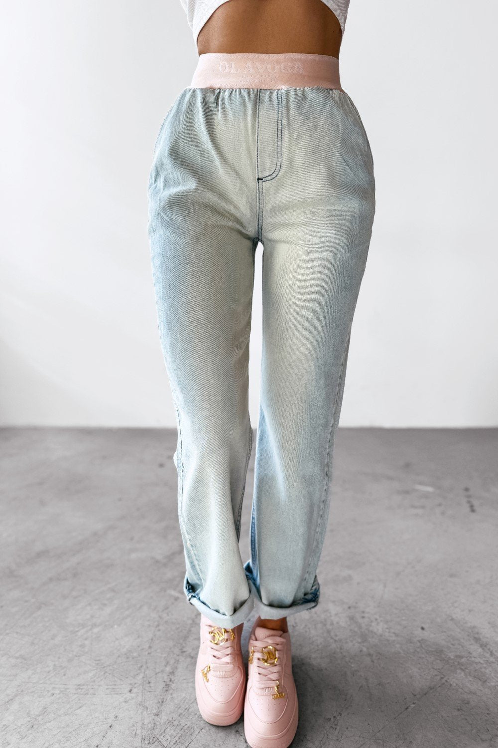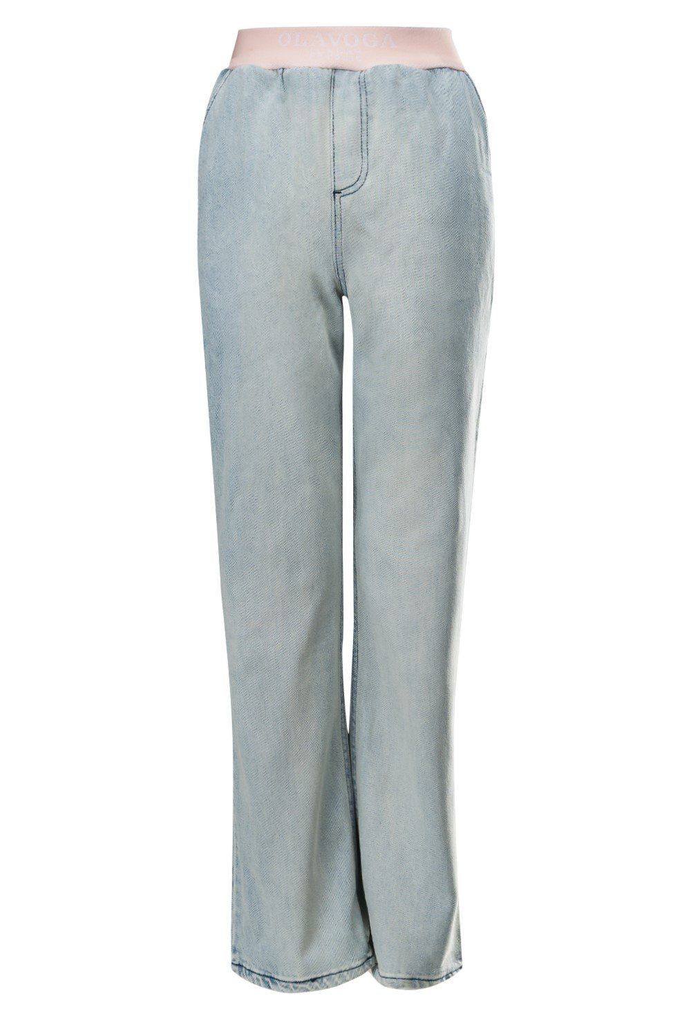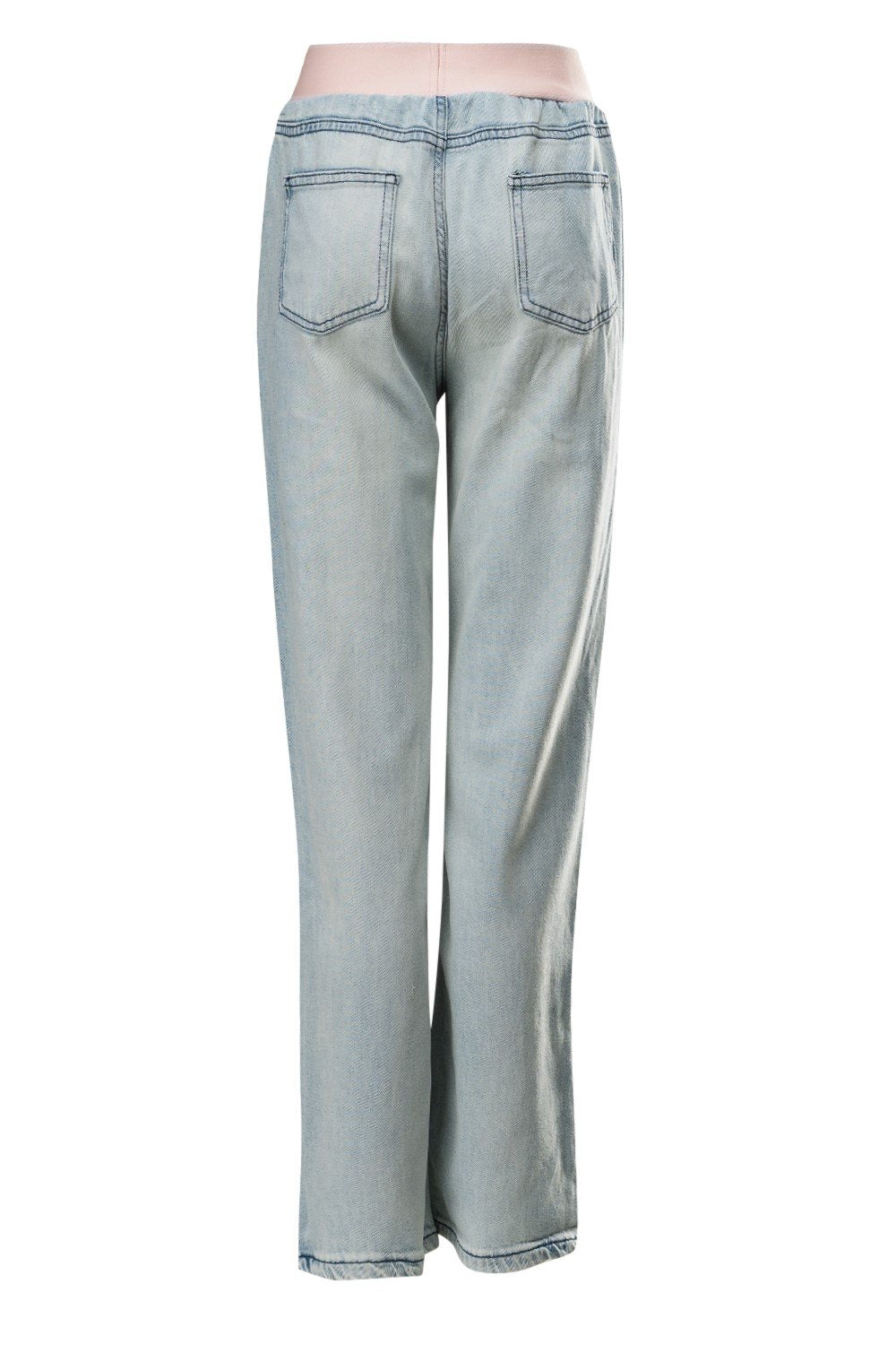Lässige Damenhose im Denim-Stil aus hochwertiger, leicht elastischer Baumwolle. Hoch tailliertes Modell mit Taschen vorne und hinten. Gummizug mit Logo in der Taille, die Hosenbeine sind nach unten leicht ausgestellt, was für modernen und bequemen Tragekomfort sorgt.