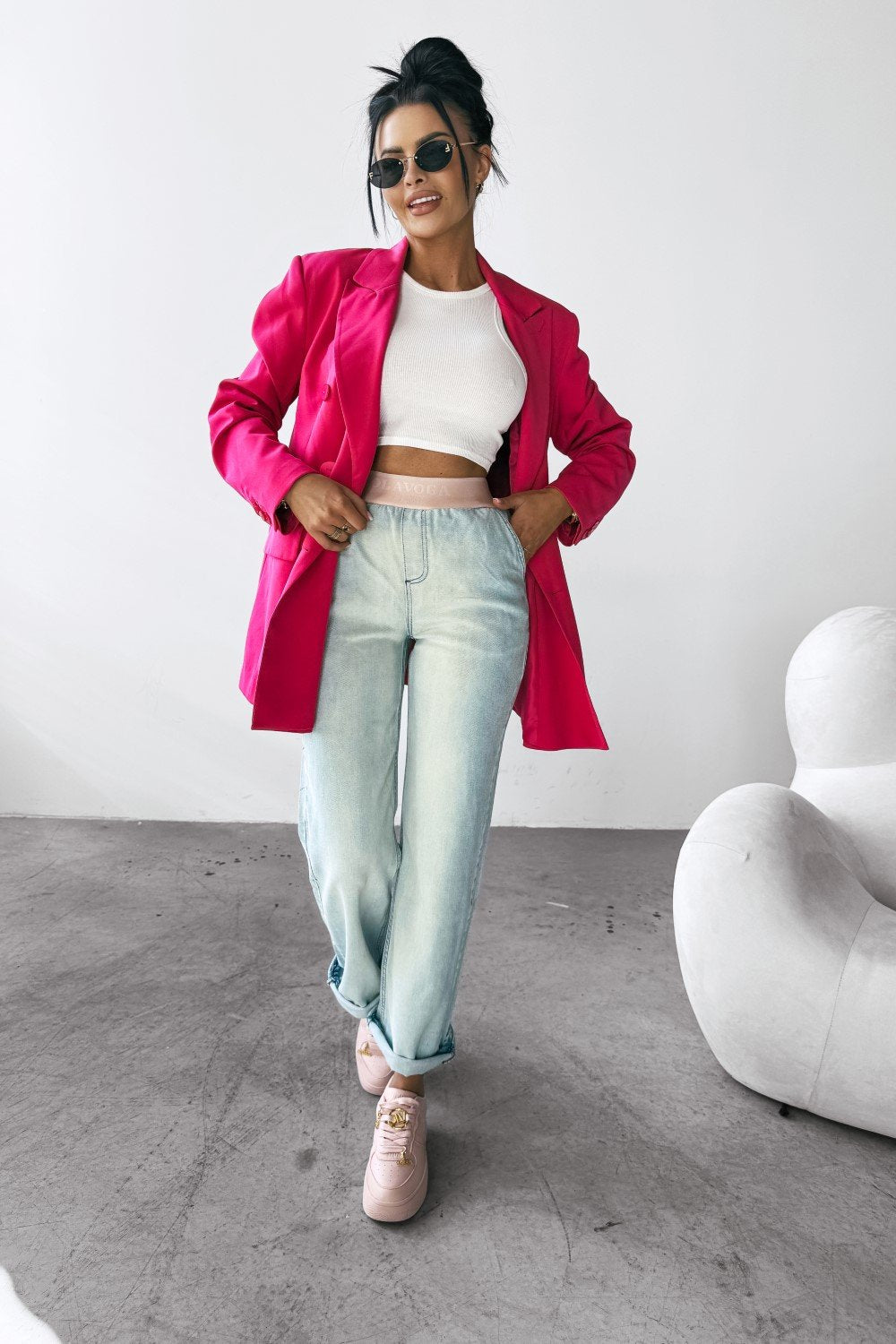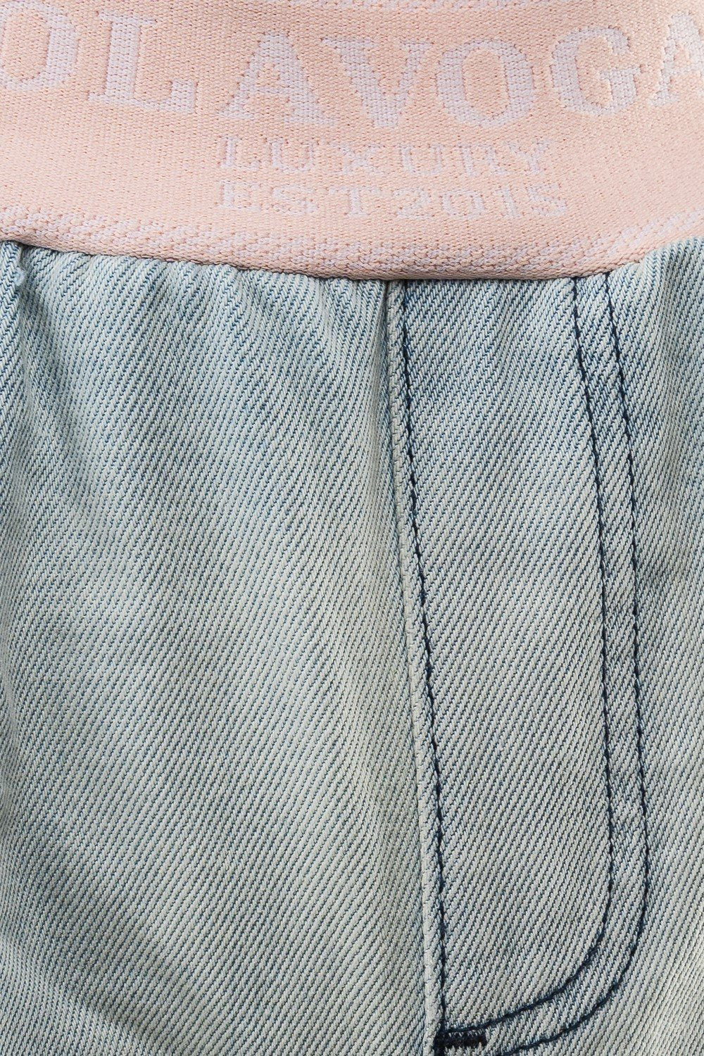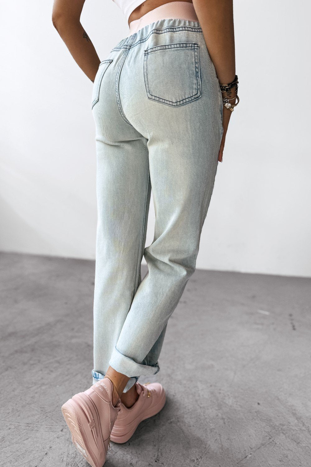 Lässige Damenhose im Denim-Stil aus hochwertiger, leicht elastischer Baumwolle. Hoch tailliertes Modell mit Taschen vorne und hinten. Gummizug mit Logo in der Taille, die Hosenbeine sind nach unten leicht ausgestellt, was für modernen und bequemen Tragekomfort sorgt.