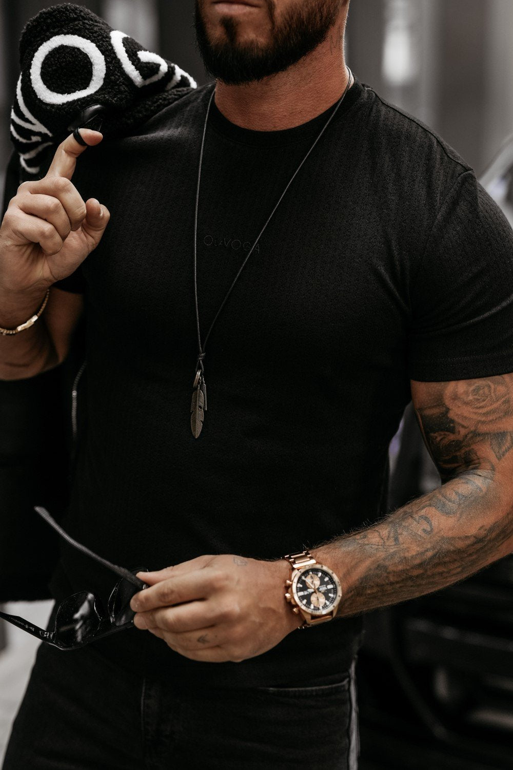 Slim Fit Herren-T-Shirt mit kurzen Ärmeln. Aus hochwertiger Baumwolle, bequem und langlebig. Kontrastierender OLAVOGA-Aufdruck auf der Brust für einen sportlichen und modernen Look.