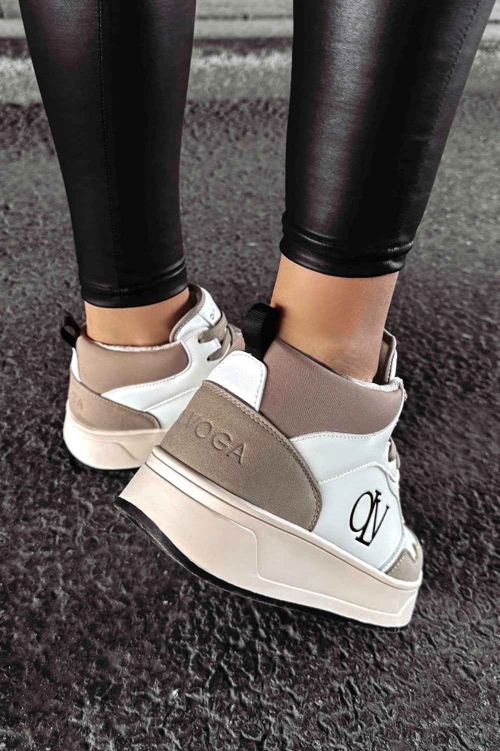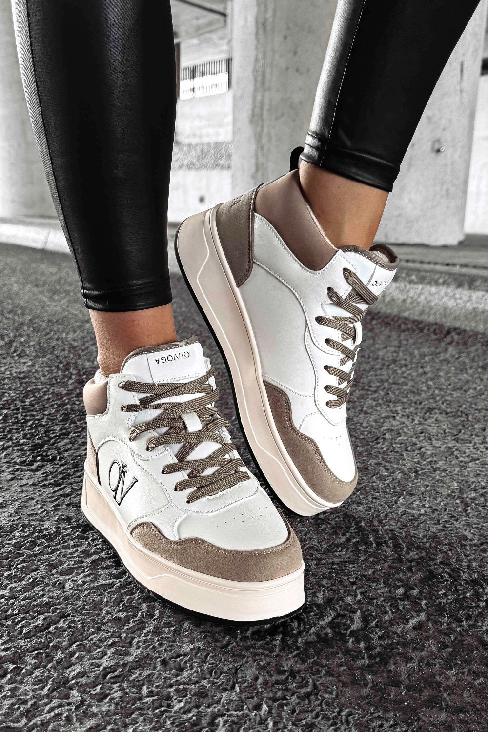 Klassische, knöchelhohe Sneaker. Hergestellt aus hochwertigem Öko-Leder. Das OLAVOGA-Markenlogo ist an der Ferse und an der Seite geprägt. Das Markenlogo befindet sich auf der Zunge. Sohle mit Logoprägung.