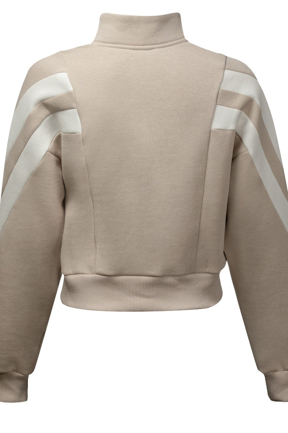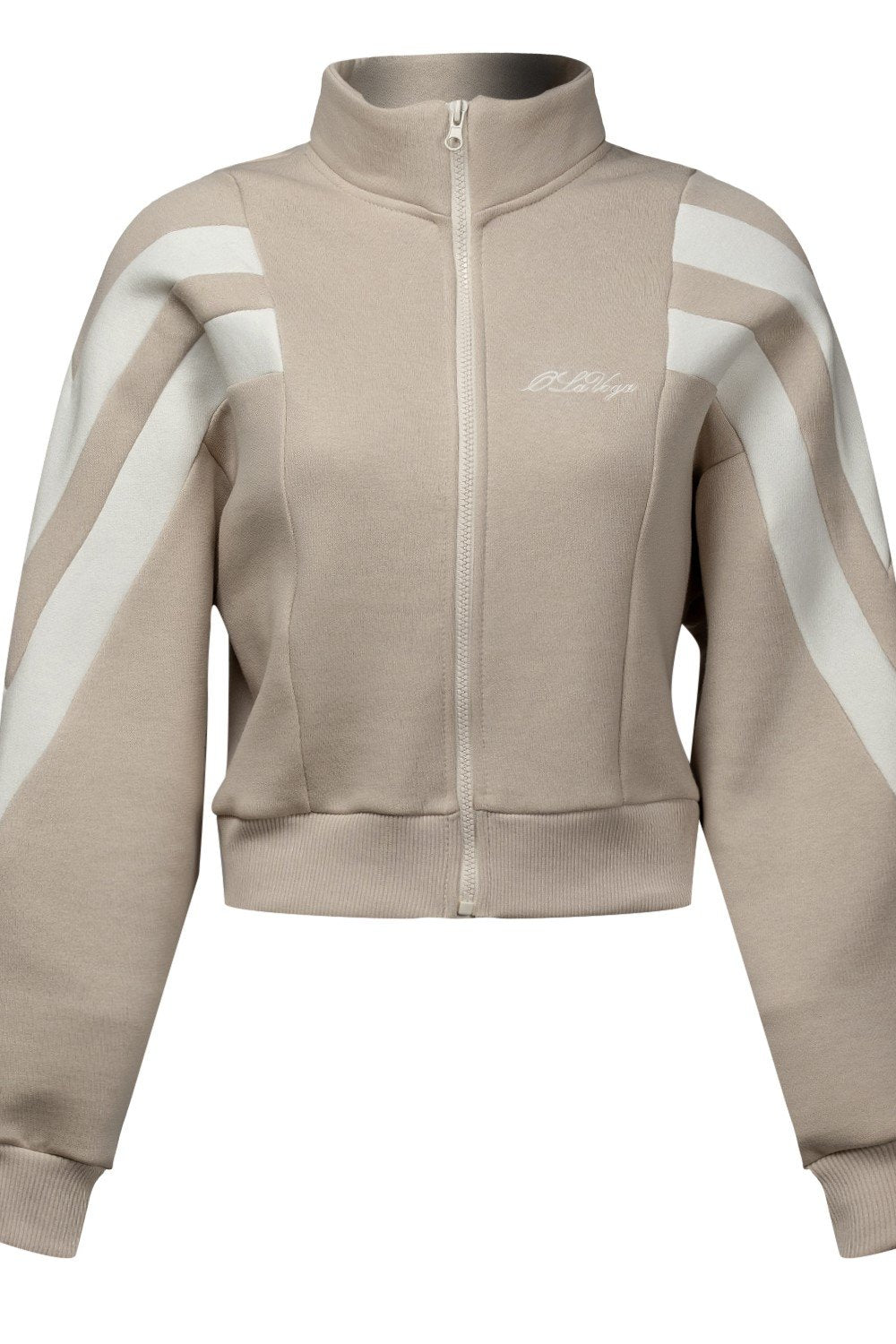 - Obere: Pullover mit Reißverschluss und hohem Kragen, gerippten Einsätzen und Seitenstreifen. Auf der Vorderseite OLIVE mit minimalistischer Stickerei.