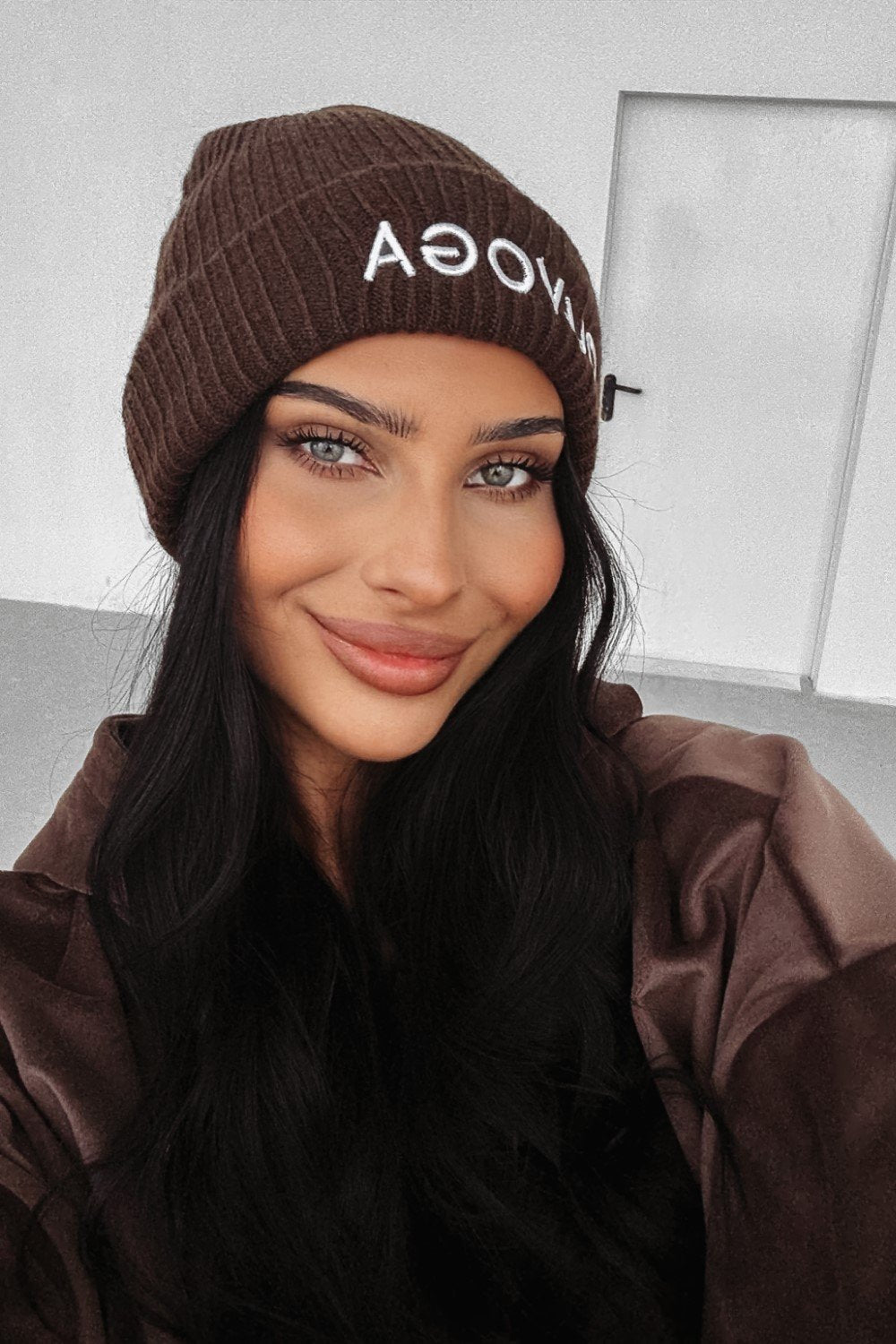 Unisex kötött sapka rugalmas, bordázott anyagból. Testhez simuló fazon, elöl logóval. Meleg és kényelmes a hűvös napokra.