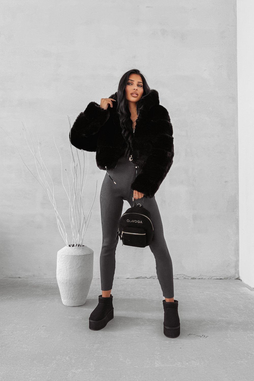 Nőies, rövidebb fazonú kabát, amely prémium anyagból készült. Elegáns szabása kiemeli az alakot, miközben kényelmes és praktikus viseletet biztosít. Elöl finom logóval, amely exkluzív részletként jelenik meg.
