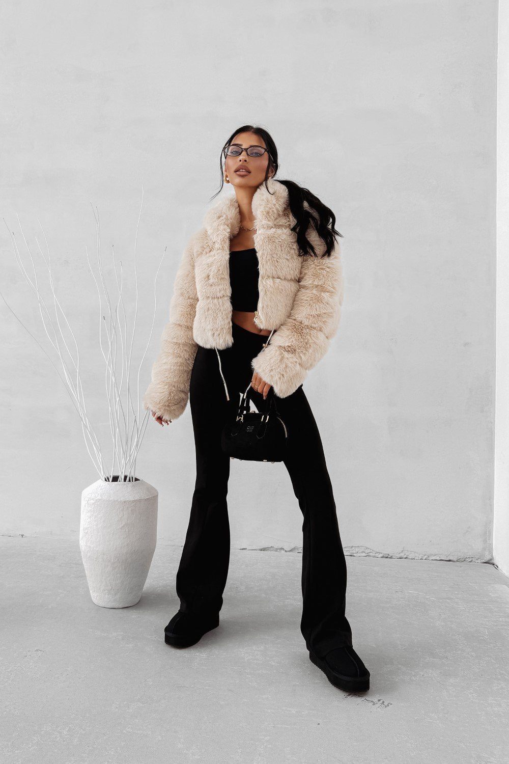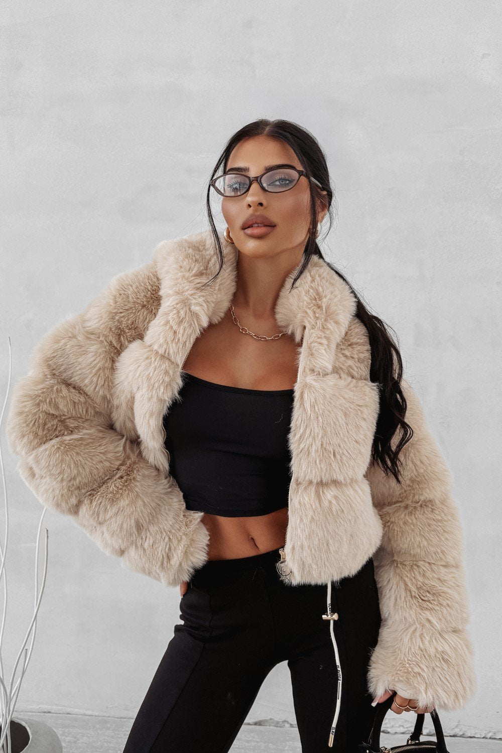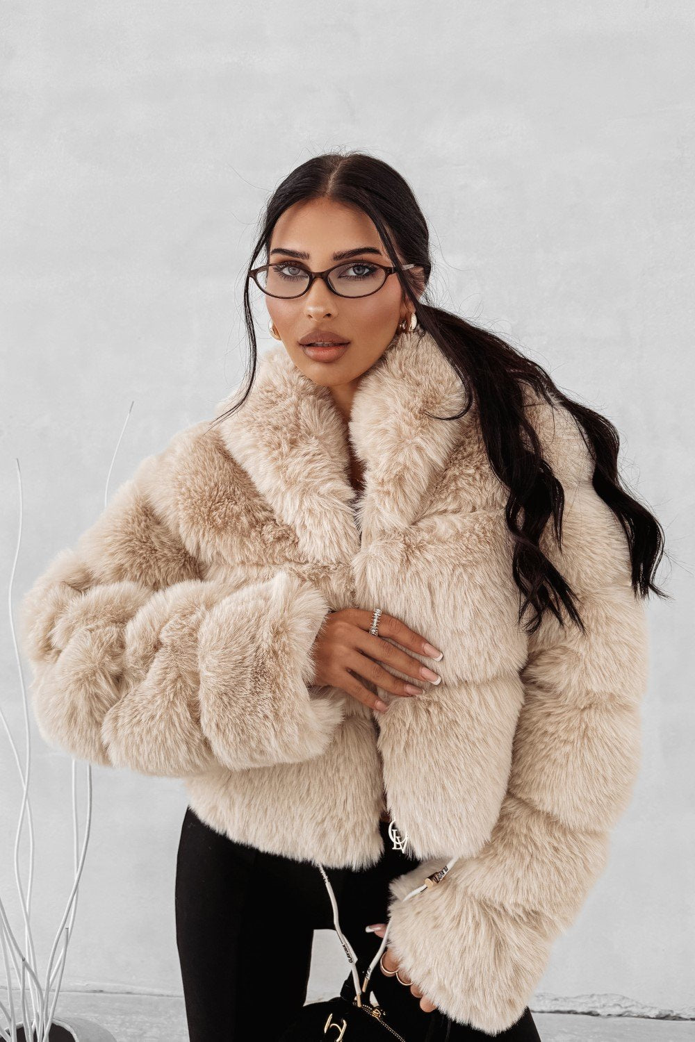 Nőies, rövidebb fazonú kabát, amely prémium anyagból készült. Elegáns szabása kiemeli az alakot, miközben kényelmes és praktikus viseletet biztosít. Elöl finom logóval, amely exkluzív részletként jelenik meg.