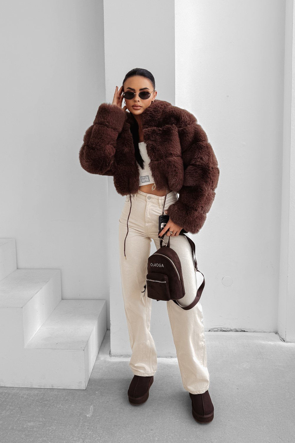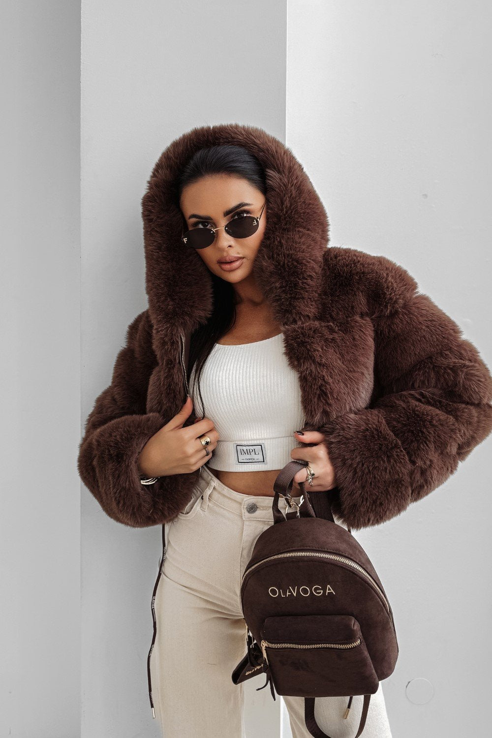 Nőies, rövidebb fazonú kabát, amely prémium anyagból készült. Elegáns szabása kiemeli az alakot, miközben kényelmes és praktikus viseletet biztosít. Elöl finom logóval, amely exkluzív részletként jelenik meg.