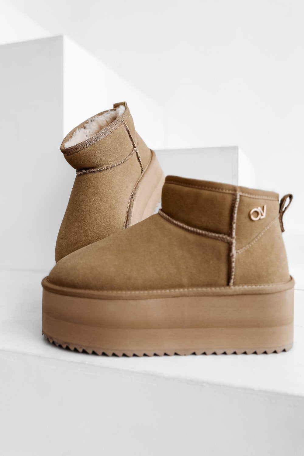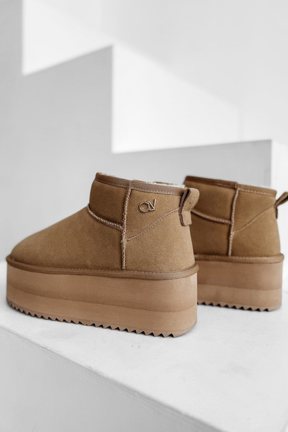 Trendi női bakancs emelt talppal, amely modern, városi stílust képvisel. Magas minőségű öko-bőrből készült, stabil talppal és kényelmes belsővel. Elöl diszkrét logóval díszítve.