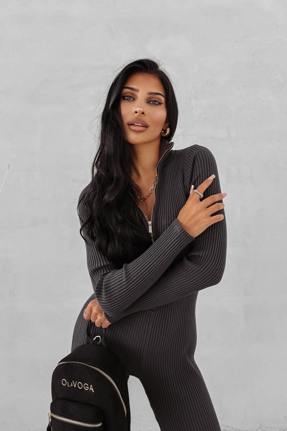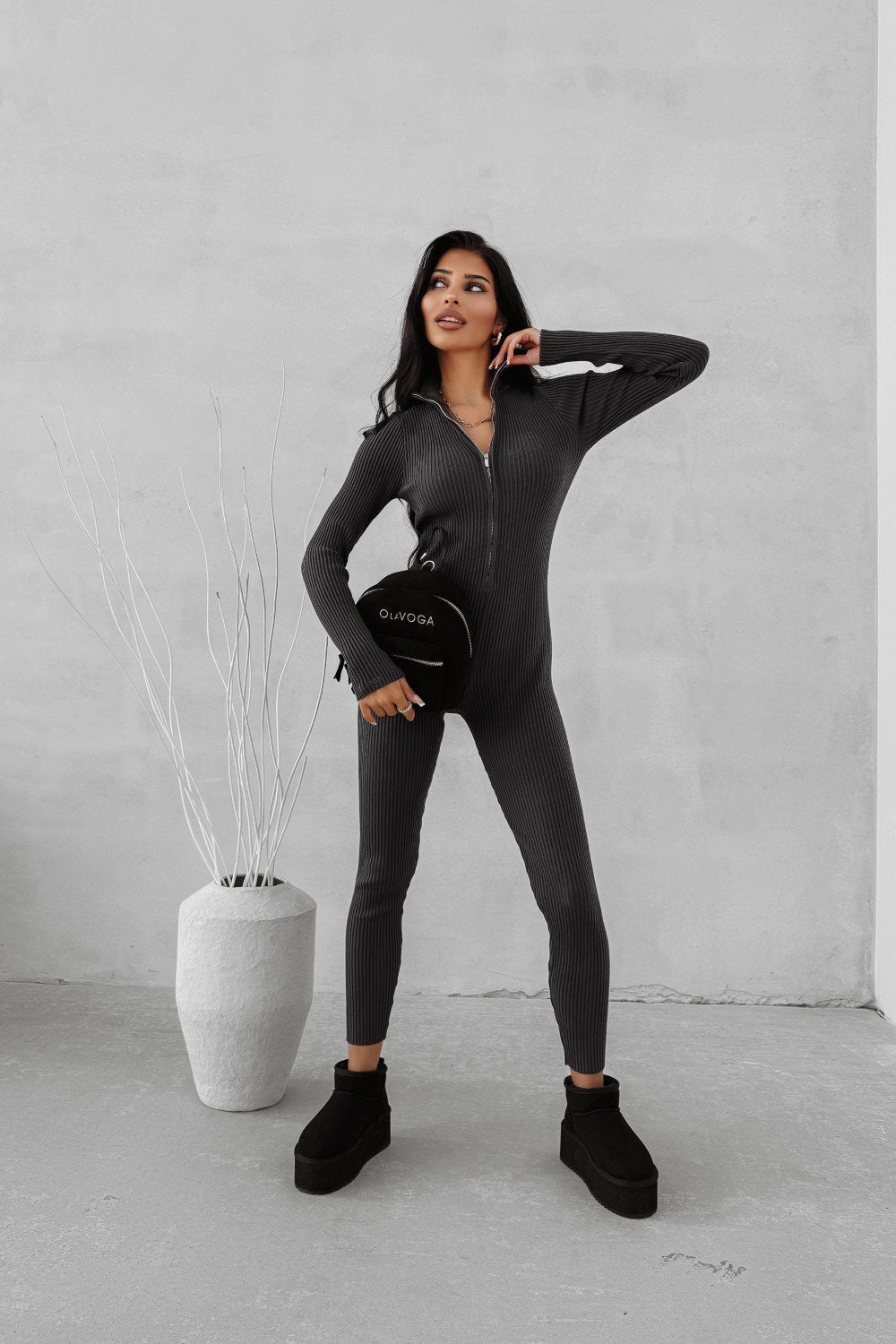 Női testhez simuló kezeslábas, amely tökéletesen követi az alakot. Rugalmas anyagból készült, így szabad mozgást biztosít. Félgarbós nyakkal és visszafogott logóval a mellkason.