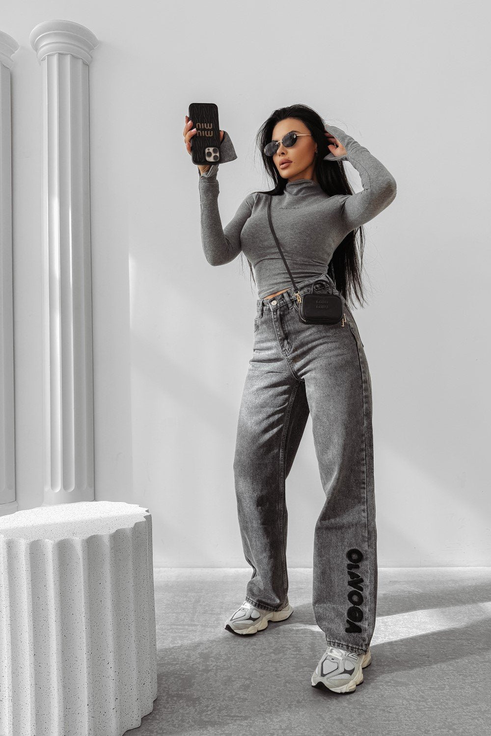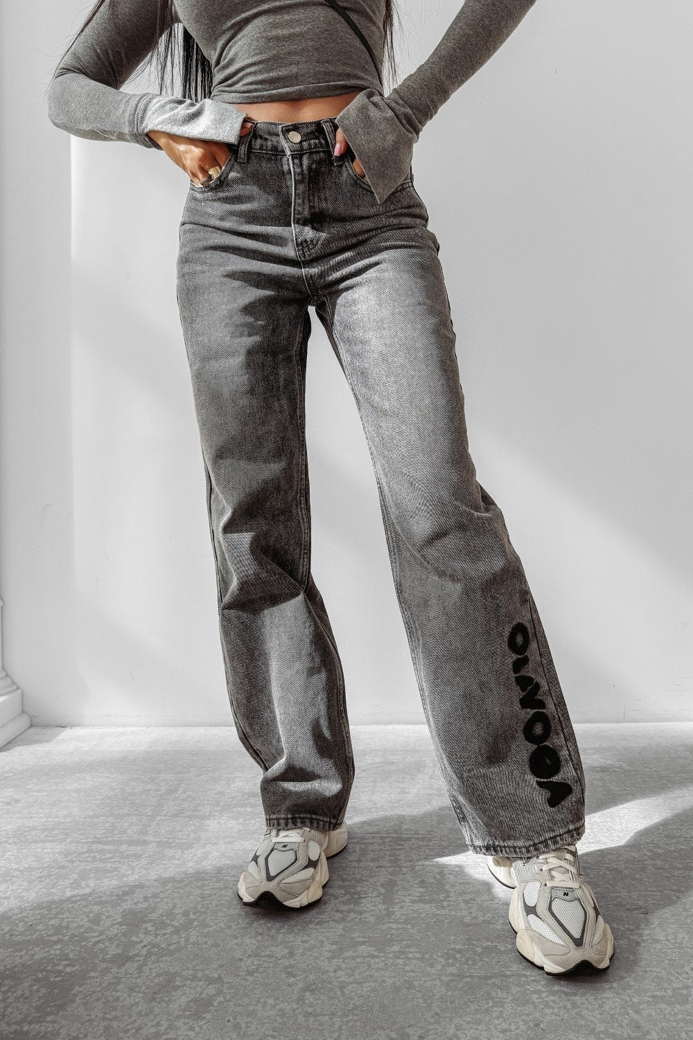 Lässige Jeans mit klassischem, geradem Schnitt und hoher Taille. Knopf- und Reißverschluss, Fünf-Taschen-Design. Das OLAVOGA-Logo auf der Gesäßtasche verleiht dem Modell einen Premium-Charakter.
