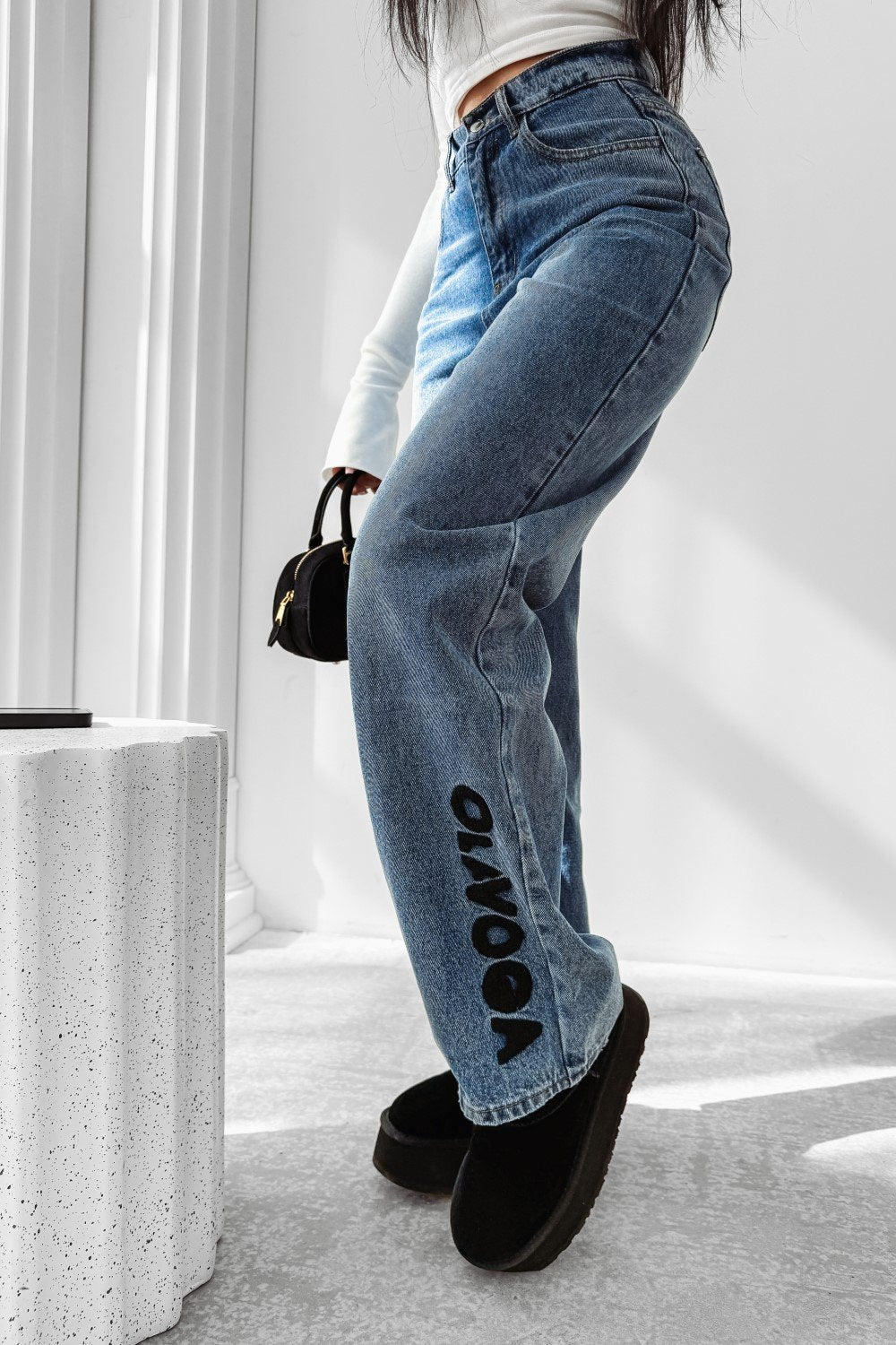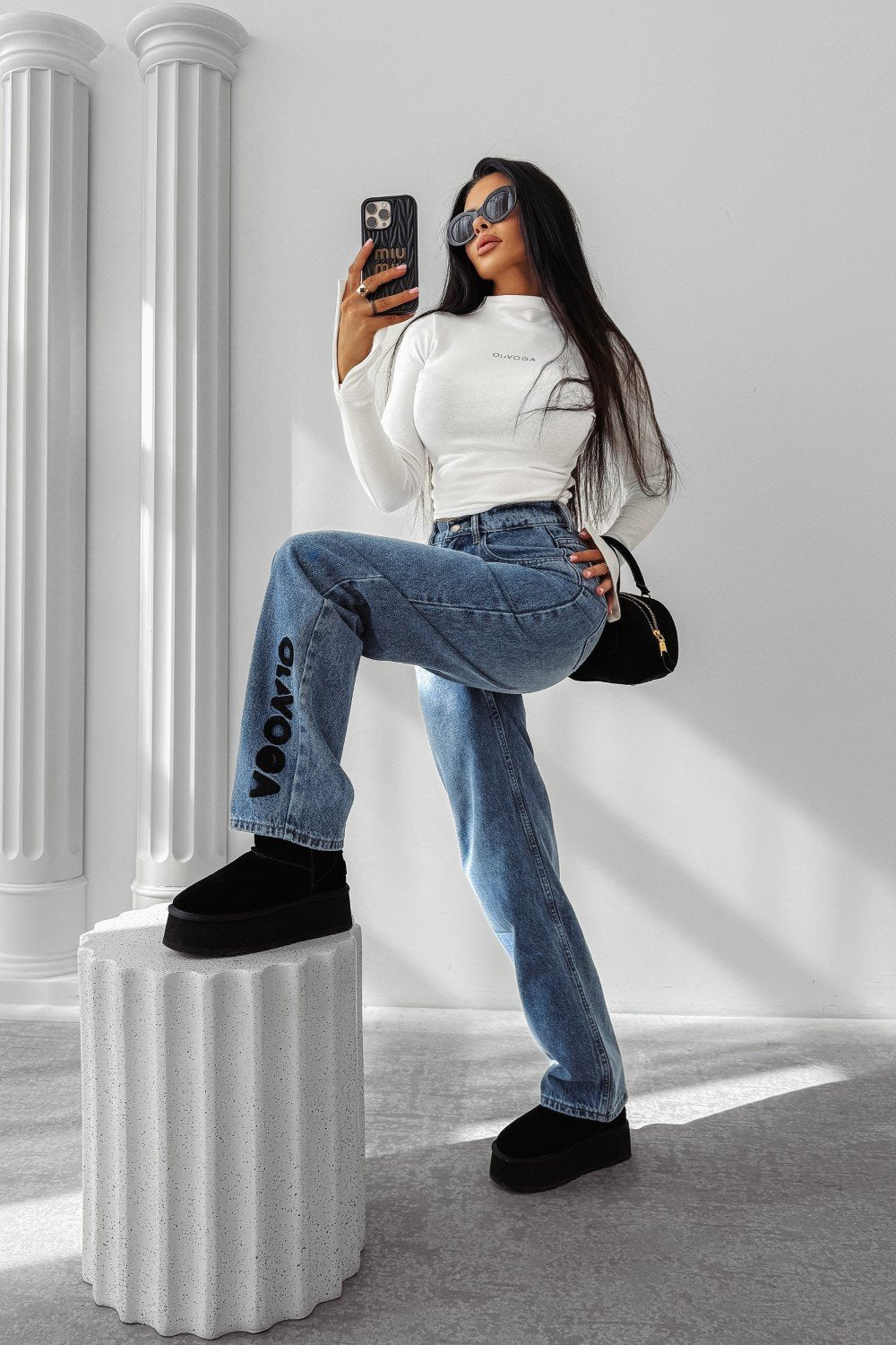 Lässige Jeans mit klassischem, geradem Schnitt und hoher Taille. Knopf- und Reißverschluss, Fünf-Taschen-Design. Das OLAVOGA-Logo auf der Gesäßtasche verleiht dem Modell einen Premium-Charakter.