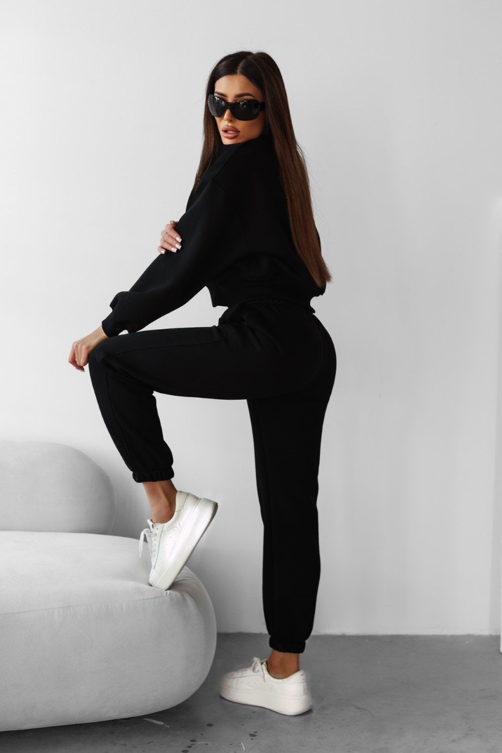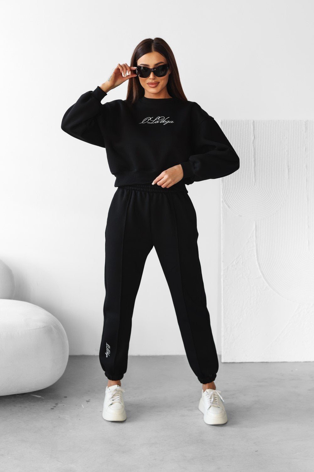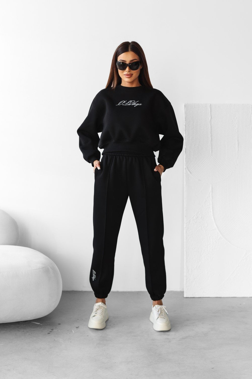 Unterteil - Sporthose mit Seitentaschen. Gerippte Bündchen an den Rändern. Elastischer Bund. Auf einem Bein befindet sich eine minimalistische Stickerei mit dem Markenlogo.
