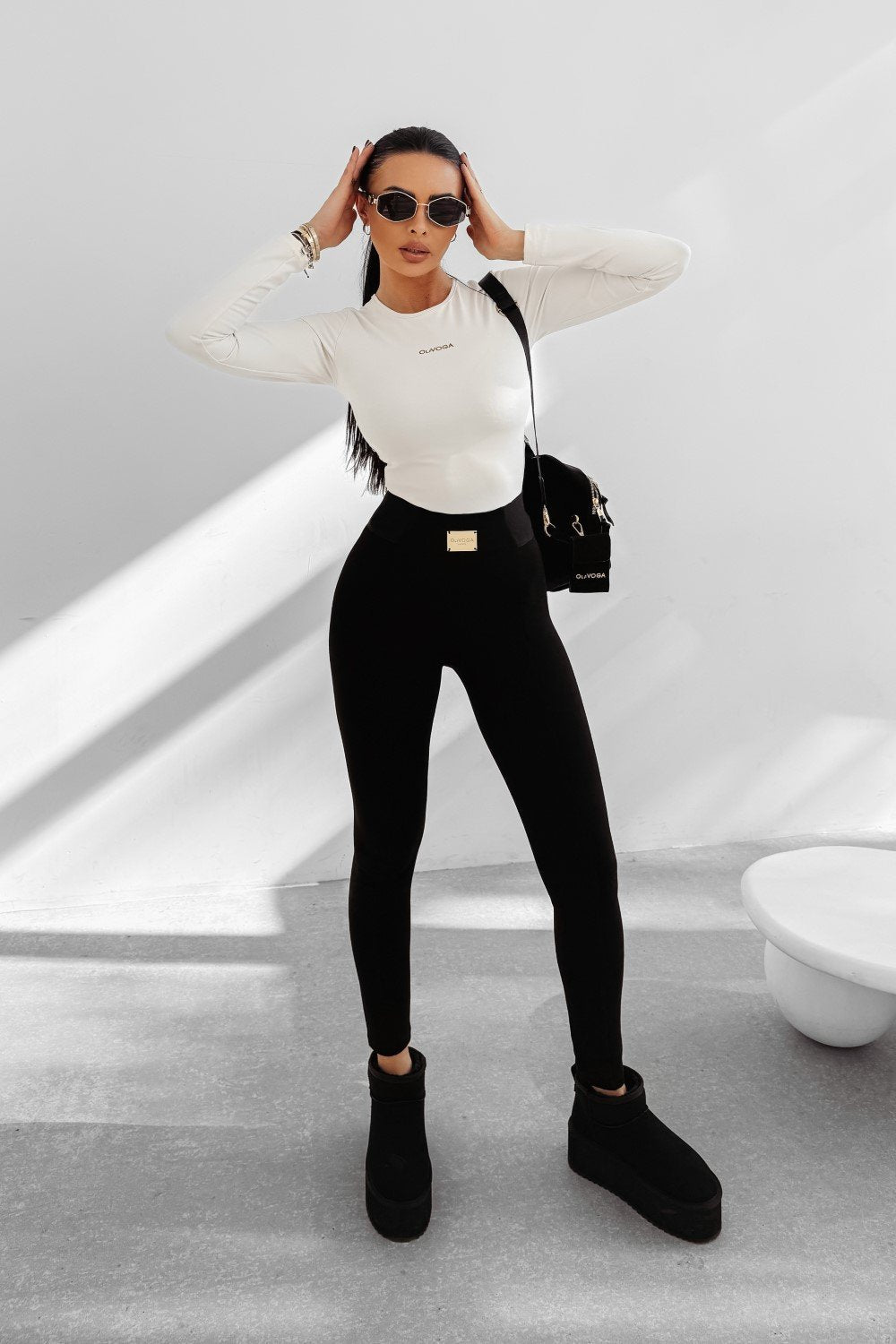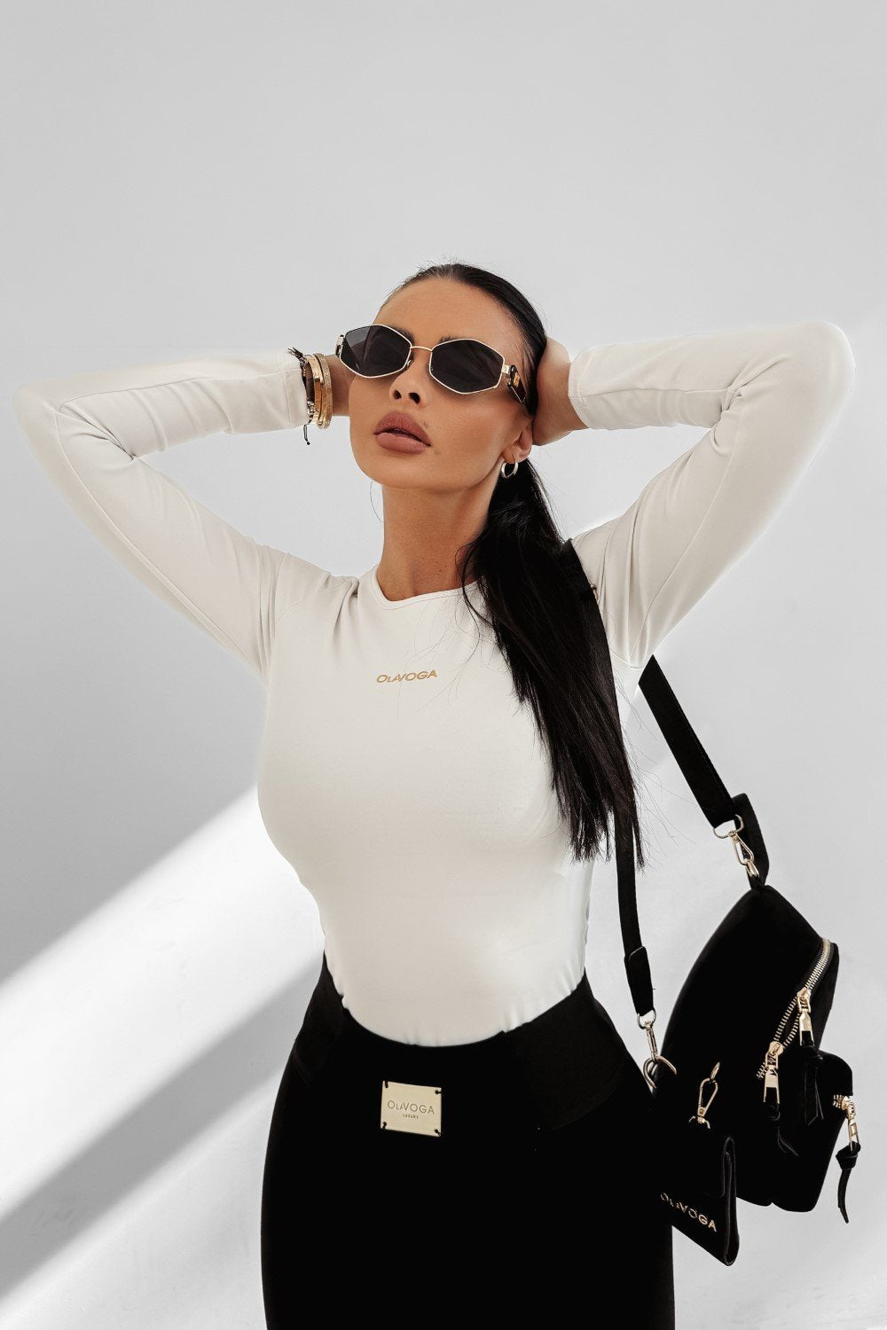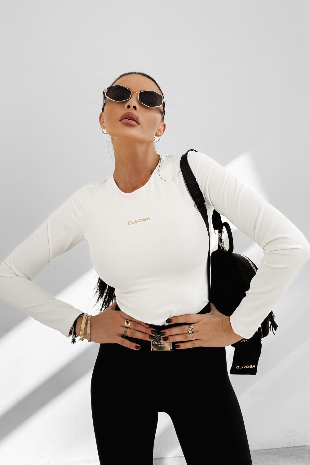 Minimalista, testhezálló hosszú ujjú felső, amely ideális mindennapi viselethez. Rugalmas anyagból készült, félgarbós nyakkal és diszkrét logóval a mellkason.