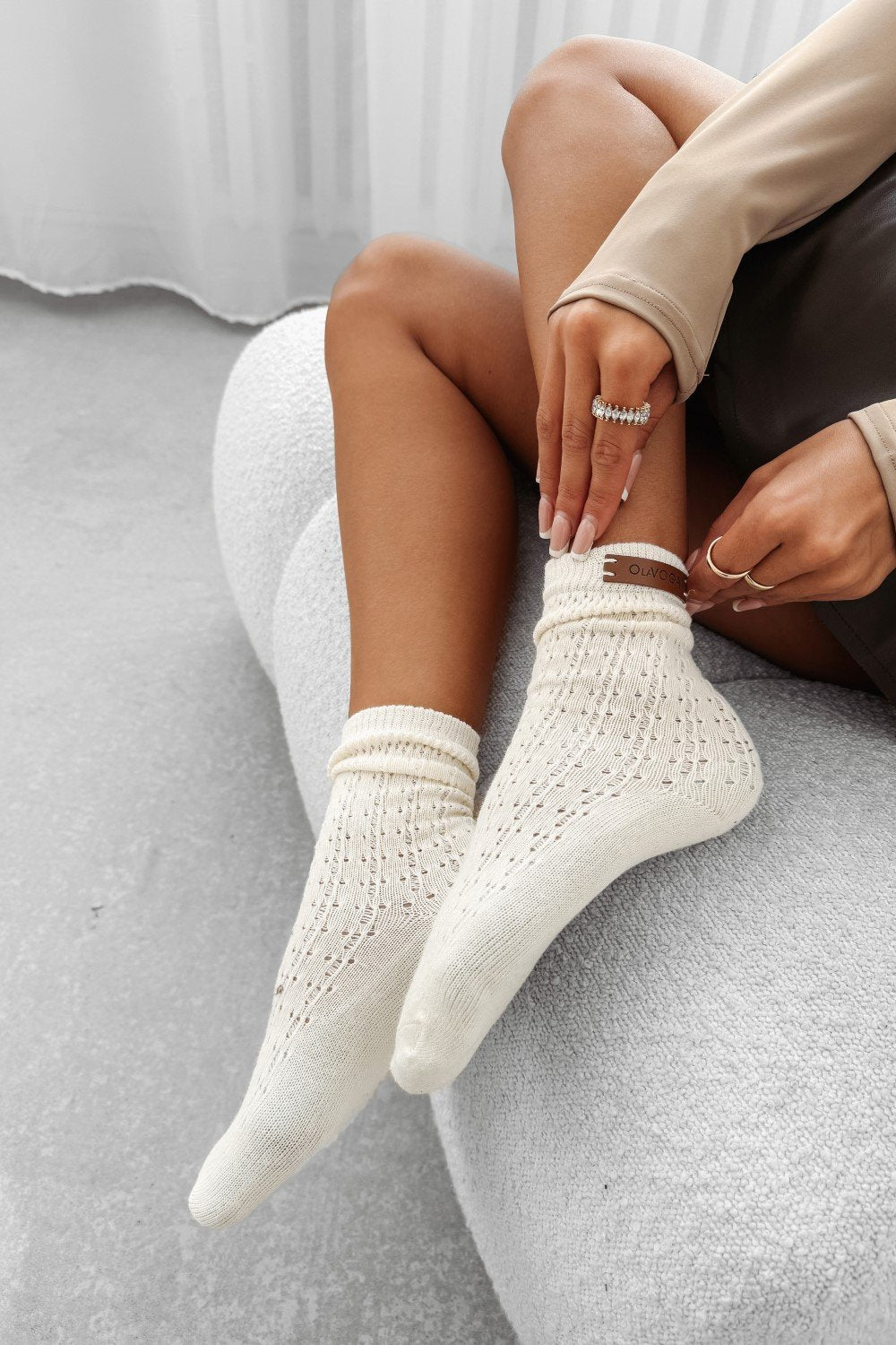 Puha női zokni, amely kényelmes és kellemes tapintású anyagból készült. Klasszikus, univerzális fazon, a felső részén apró logóval díszítve.