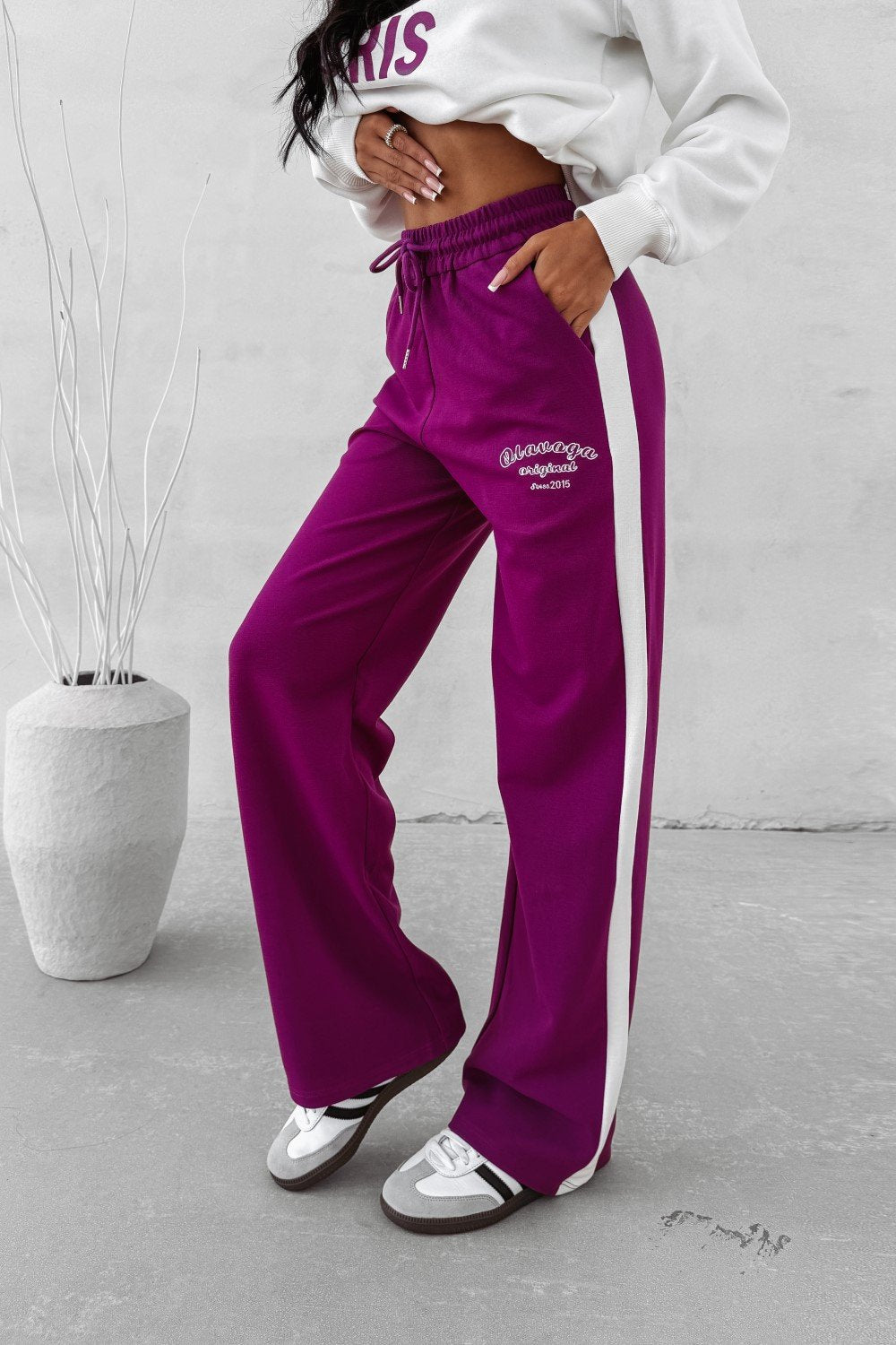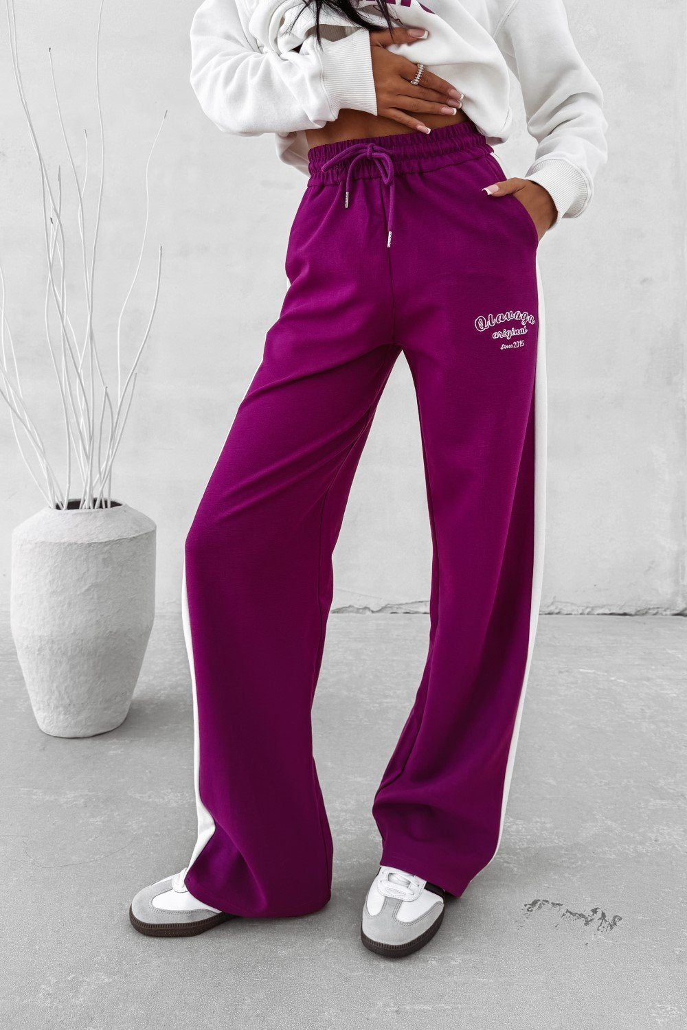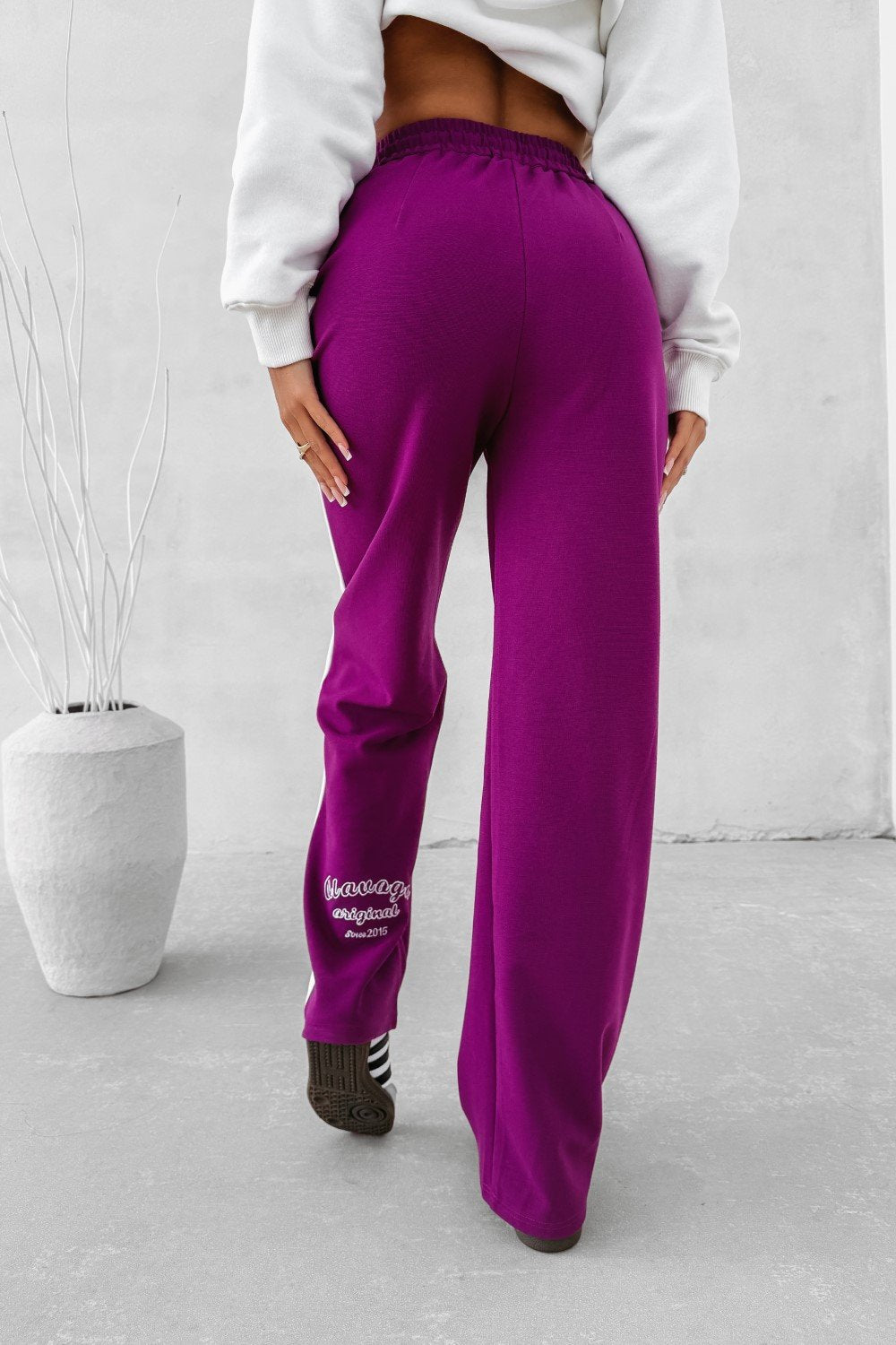 Sportos, bővebb szabású női melegítőnadrág magas derékkal. Puha, rugalmas pamut anyagból készült. Oldalt zsebekkel és hímzett logóval a combon.