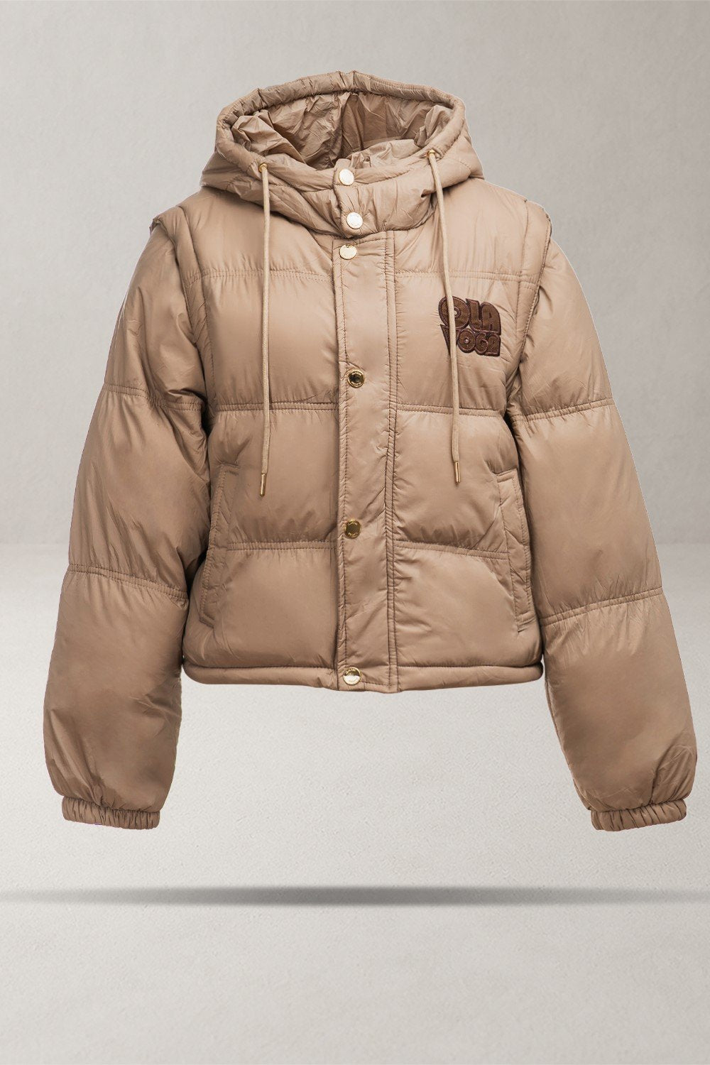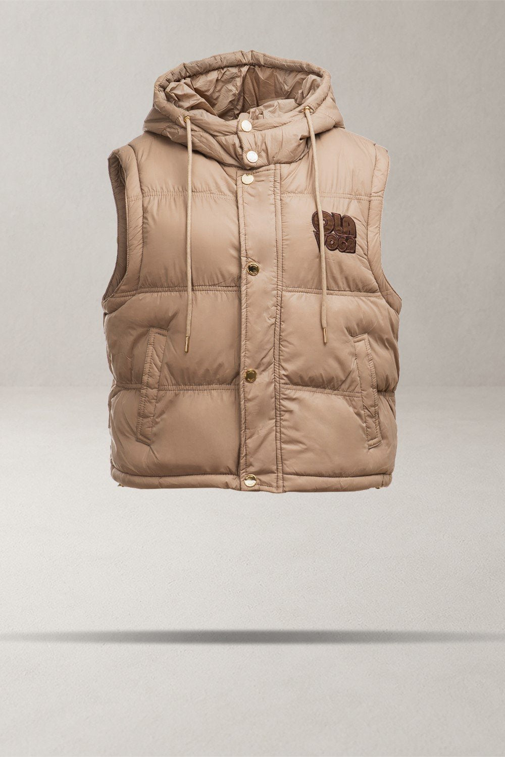Modern, steppelt dzseki és mellény ötvözete, amely sokoldalú és praktikus viselet. Könnyű, meleg anyagból készült, cipzárral záródik. Elöl visszafogott logóval.