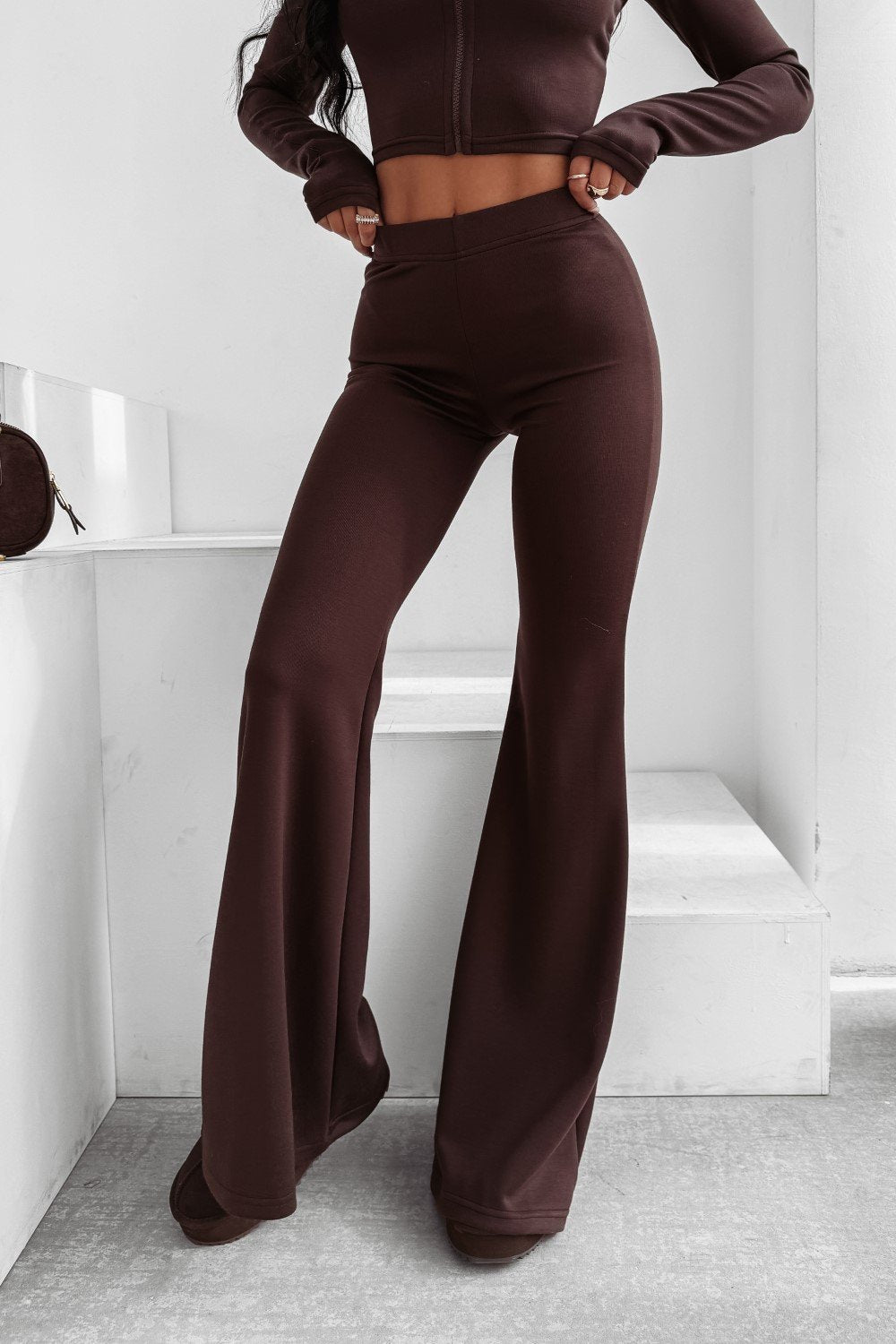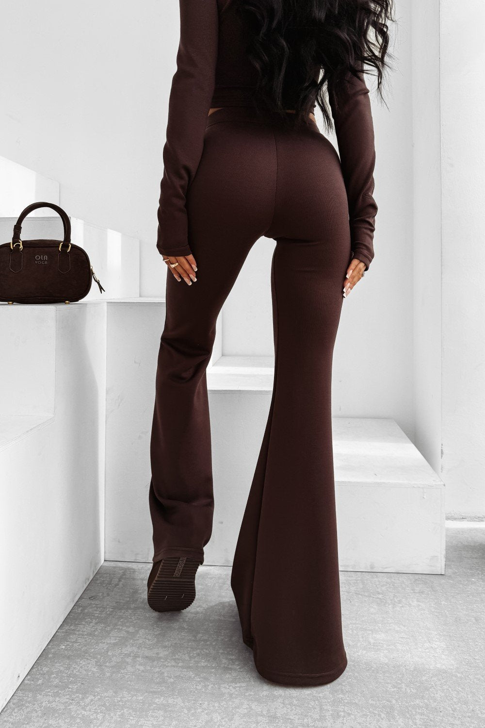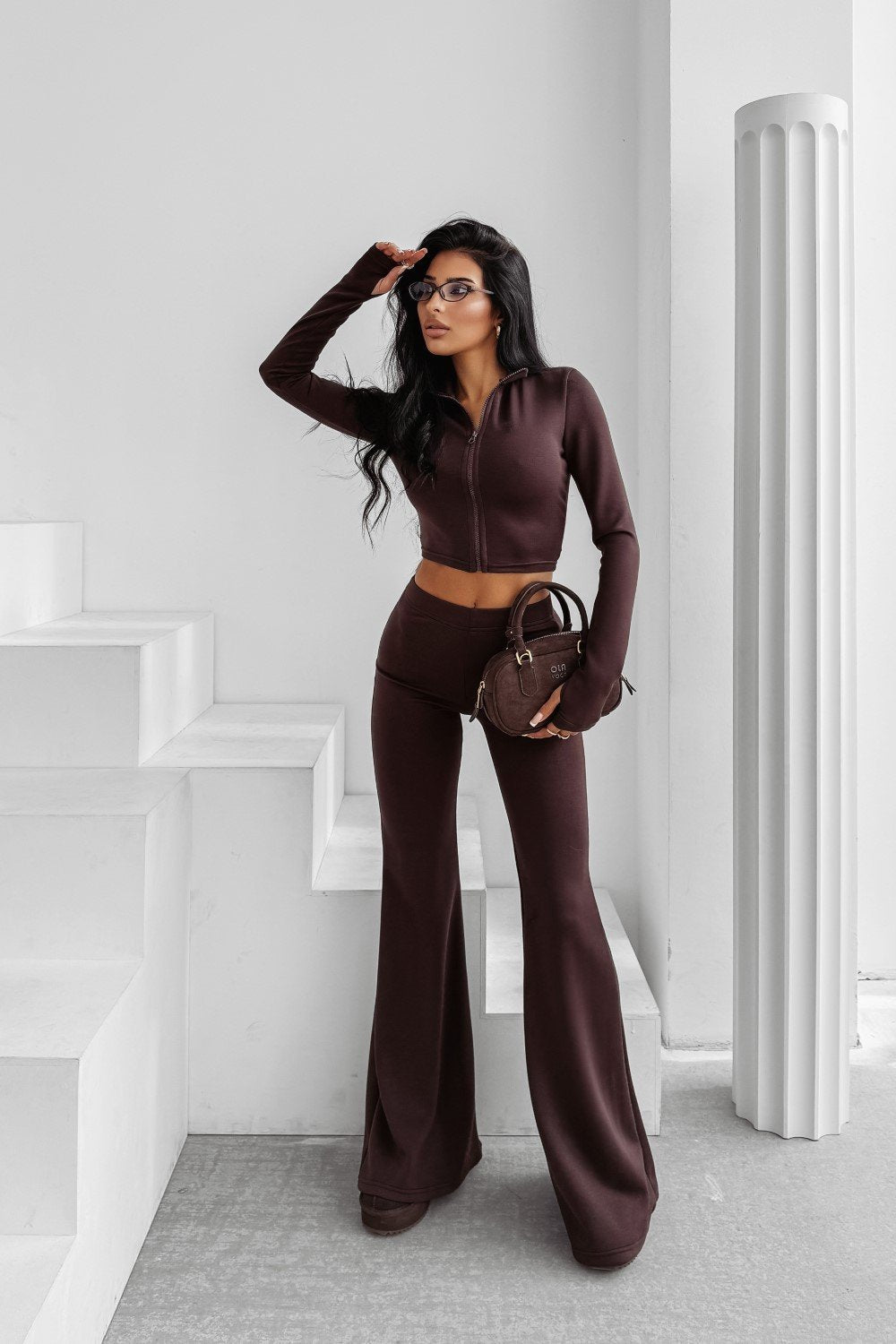 Női szett, amely prémium minőségű, rugalmas anyagból készült. Testhez simuló fazon, amely kiemeli az alakot. A felső félgarbós, az alsó magas derekú nadrág. Finom logóval díszítve.