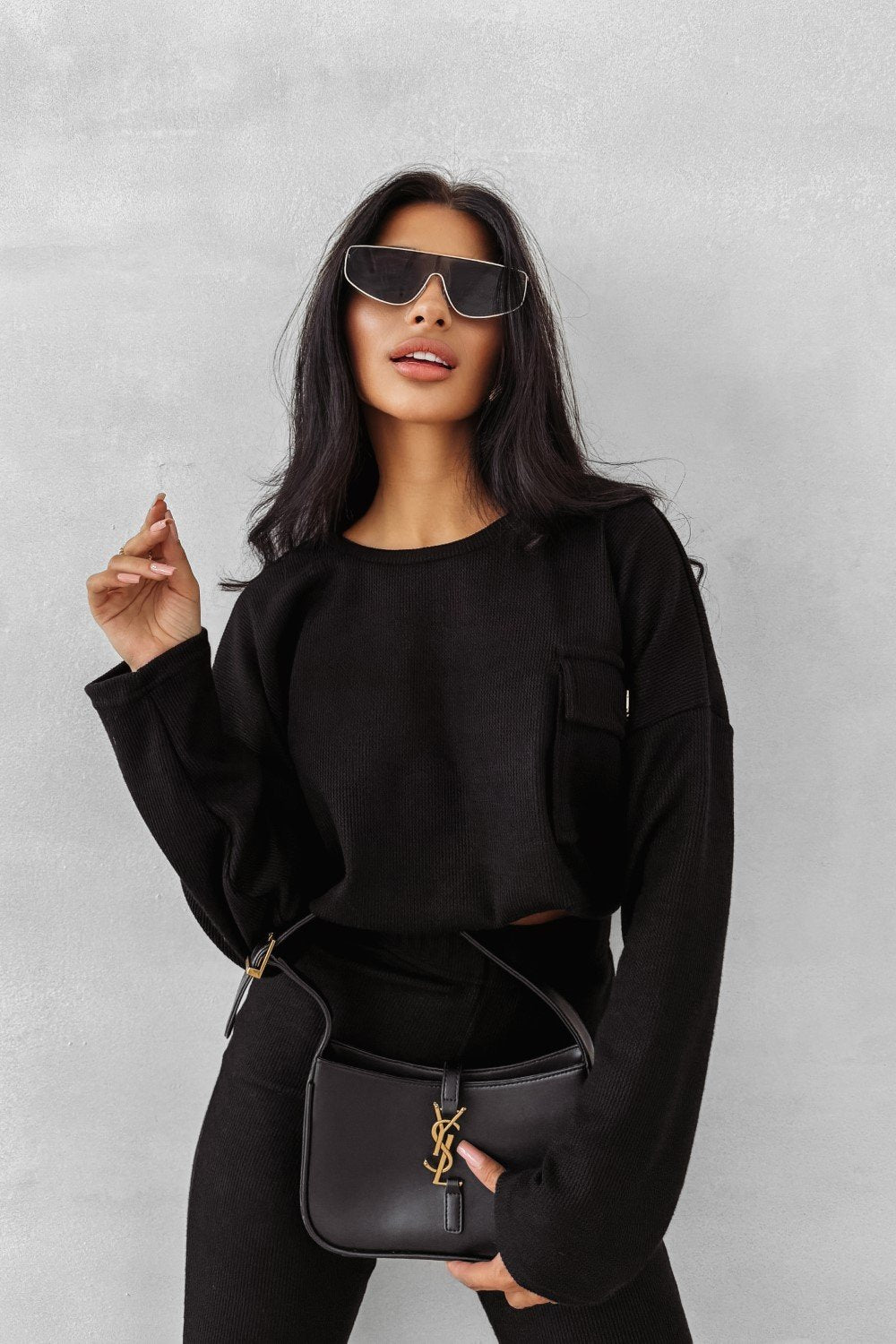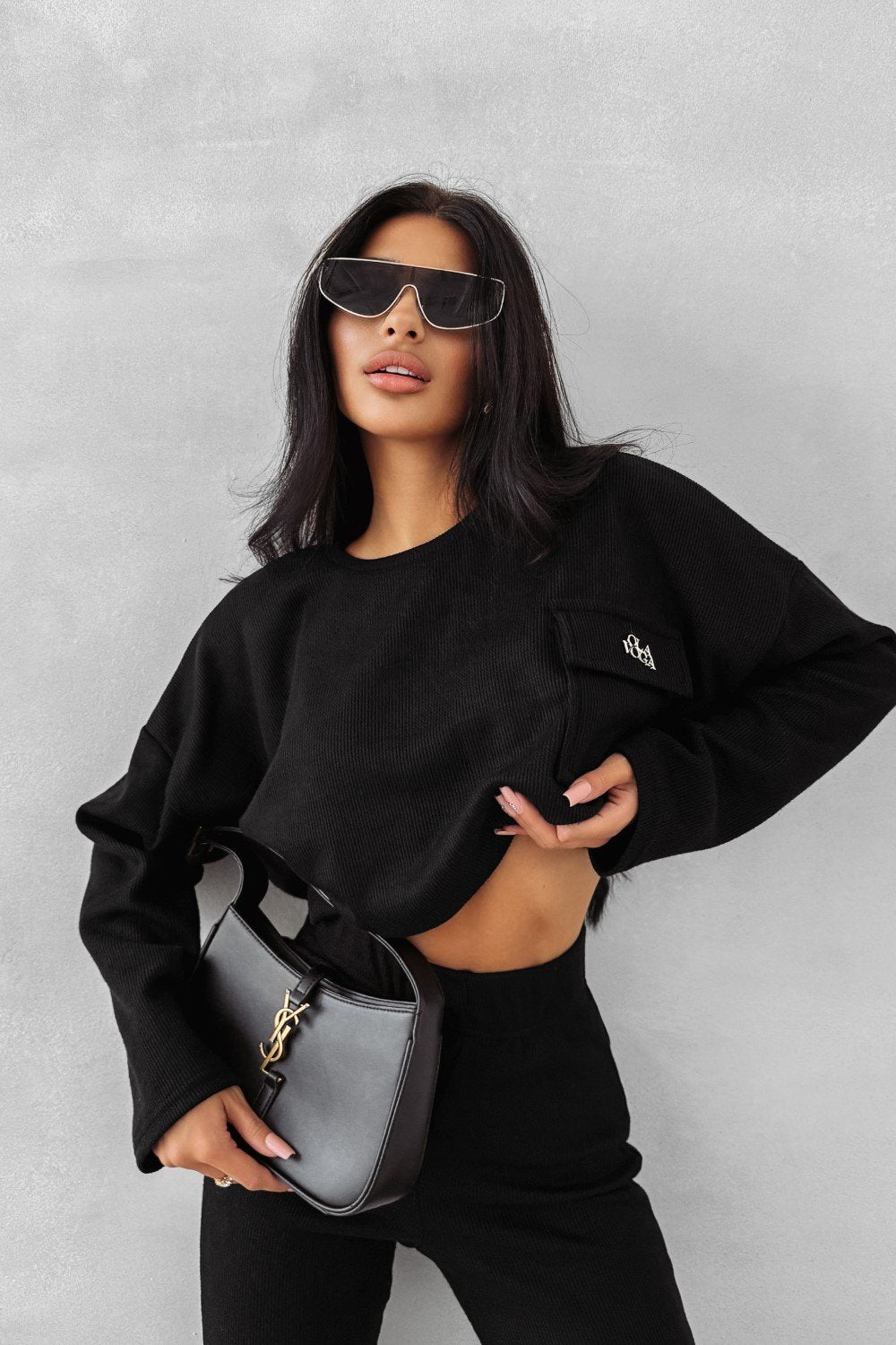 Udobna ženska kombinacija od mekog, elastičnog pletenog materijala. Gornji i donji dio skladno pristaju, idealni za svakodnevno nošenje. Jednostavni detalji i logo dodaju elegantan dojam.