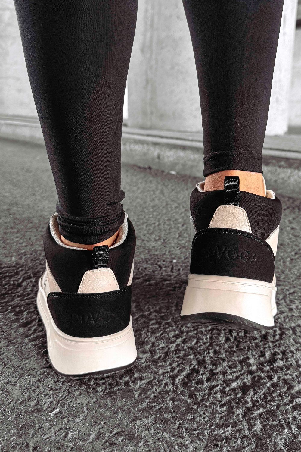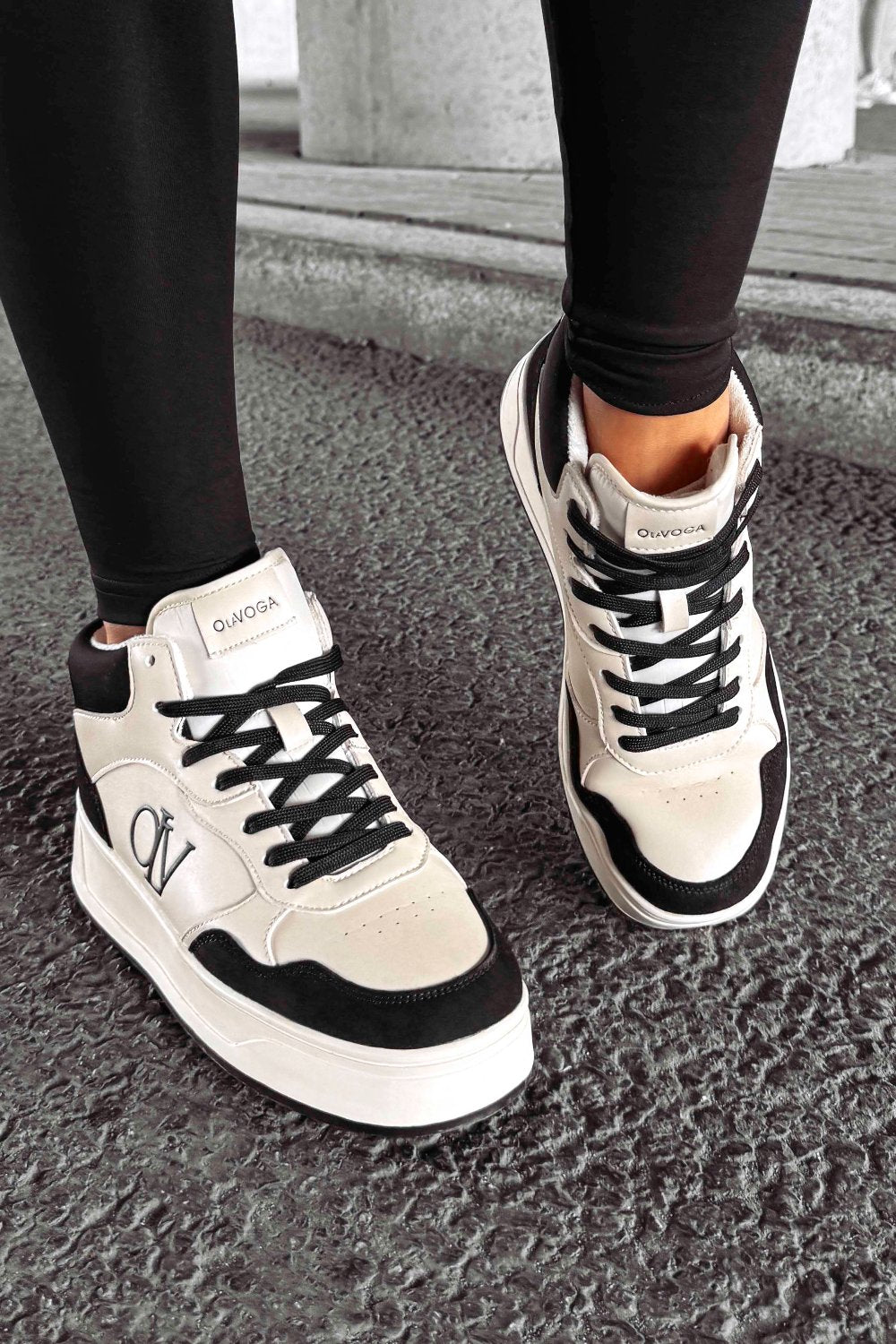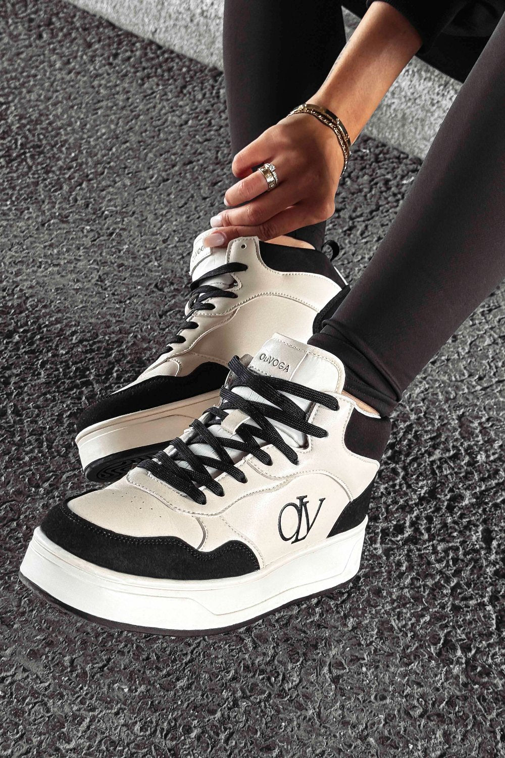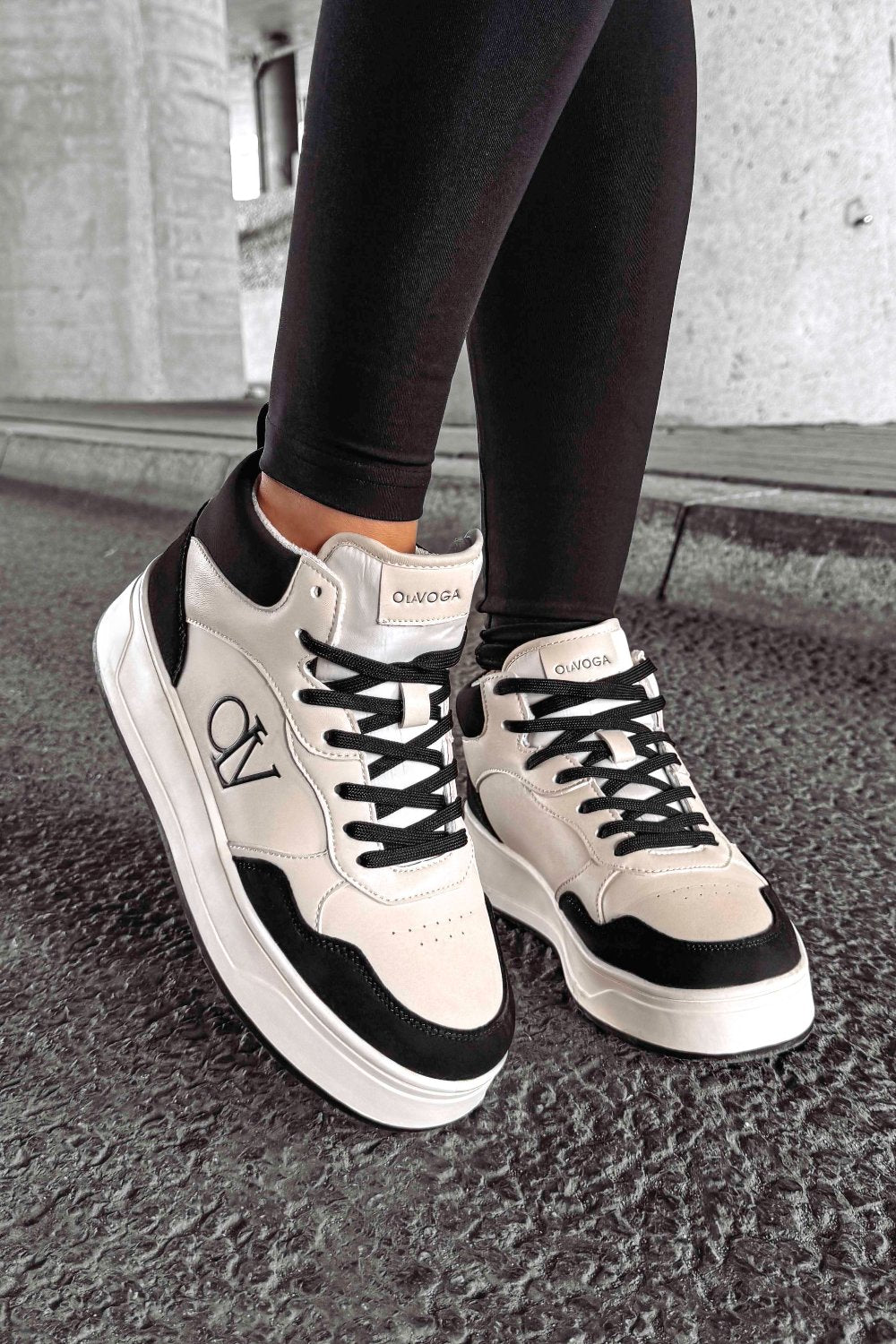 Klasszikus, bokáig érő sneakers. Kiváló minőségű öko bőrből készült. A saroknál és az oldalon az OLAVOGA márka logója domborított. A nyelven a márka logója található. Logózott talp.