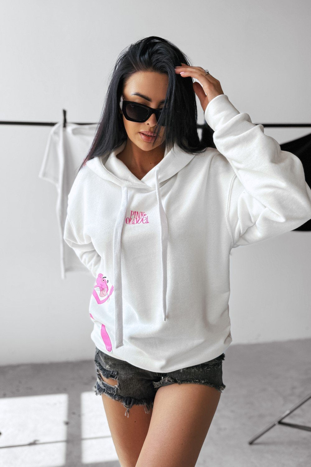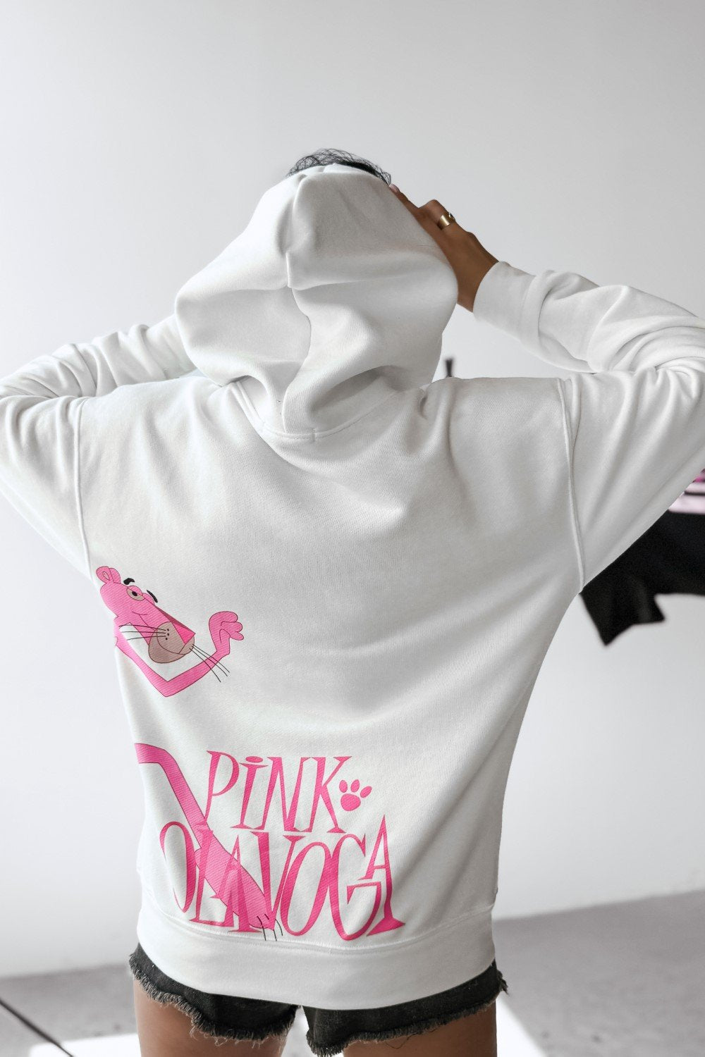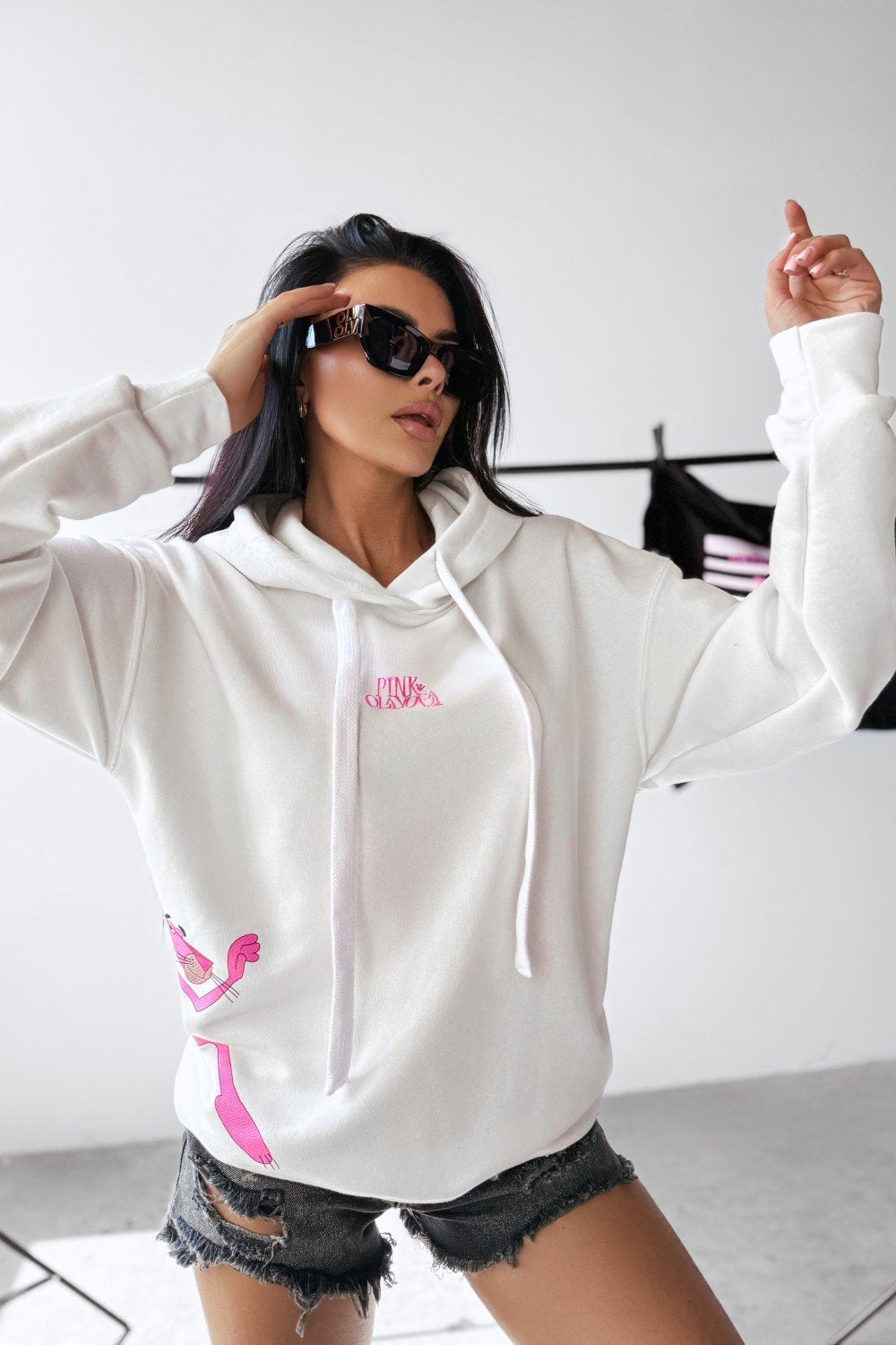 Casual stílusú, kényelmes fazonú női kapucnis pulóver, amely magas minőségű pamutanyagból készült, poliészter tartalommal a tartósság és rugalmasság érdekében. A kapucni húzózsinórral állítható. Az elülső részt letisztult OLAVOGA logó és PINK felirat díszíti, amit egy látványos, rózsaszín grafika egészít ki. A hátoldalon nagyméretű, figyelemfelkeltő márkalogó található. Tökéletes választás sportos vagy utcai összeállításokhoz.