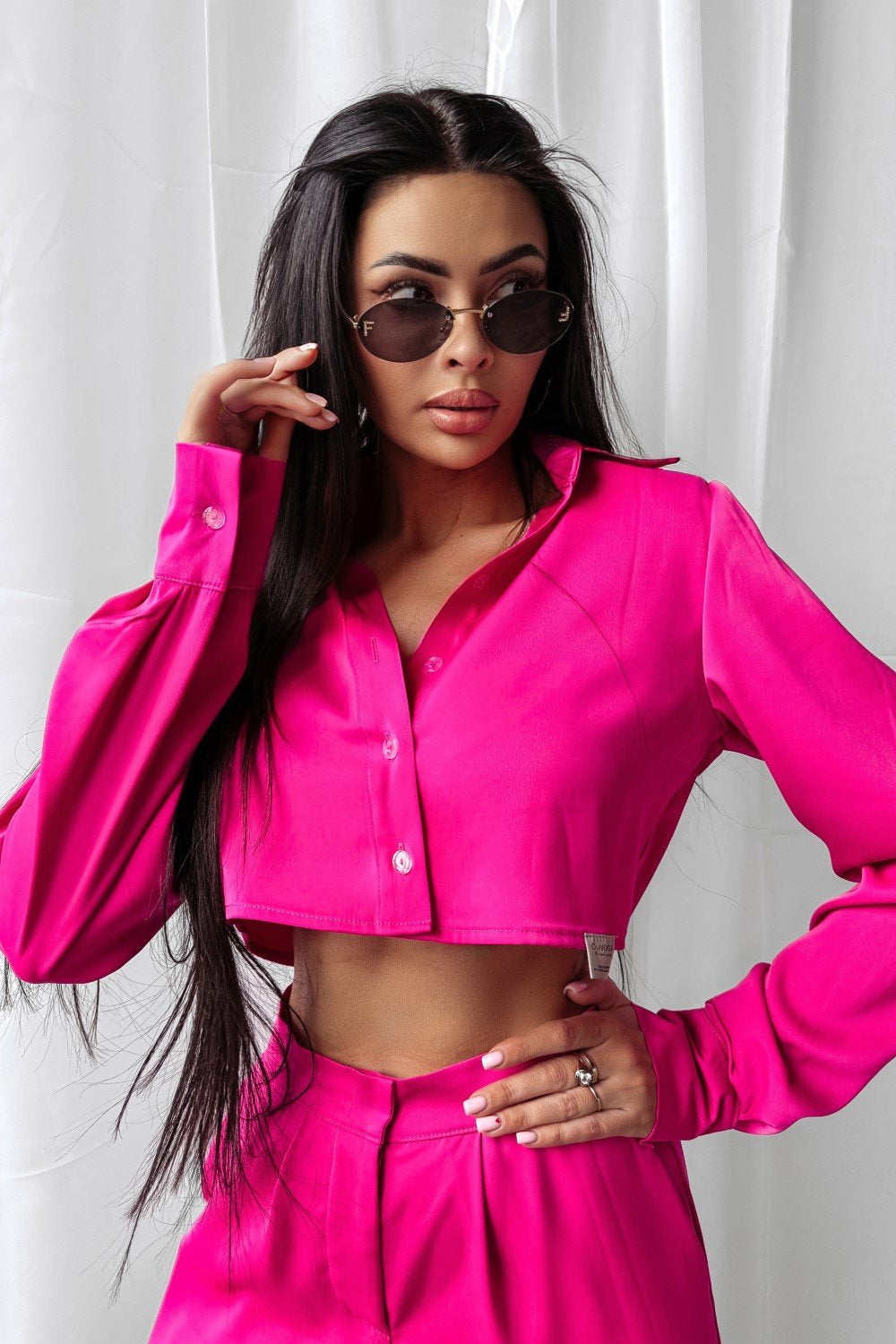 - Felső: Klasszikus, gombos hosszú ujjú ing, amelyet válltömés tesz még kifinomultabbá. Az elülső részen minimalista, logózott felvarró található.