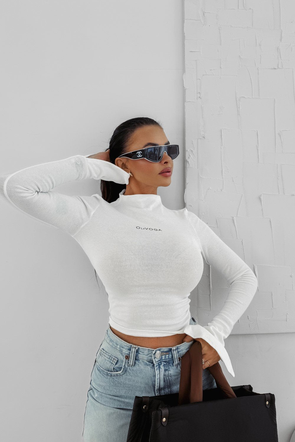 Testhezálló, hosszú ujjú felső kerek nyakkal. Rugalmas, kellemes tapintású anyagból készült, amely szépen követi az alakot és kényelmes egész napos viseletet biztosít. Elöl diszkrét logórészlettel.