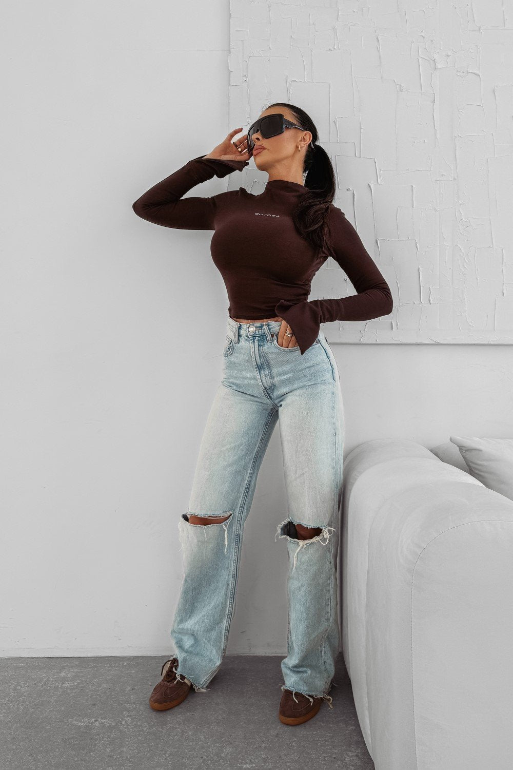 Testhezálló, hosszú ujjú felső kerek nyakkal. Rugalmas, kellemes tapintású anyagból készült, amely szépen követi az alakot és kényelmes egész napos viseletet biztosít. Elöl diszkrét logórészlettel.