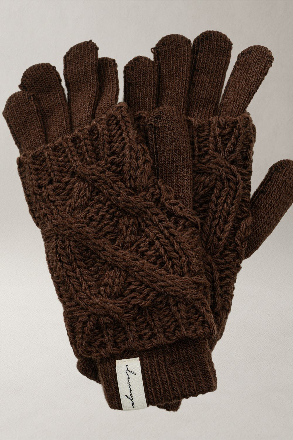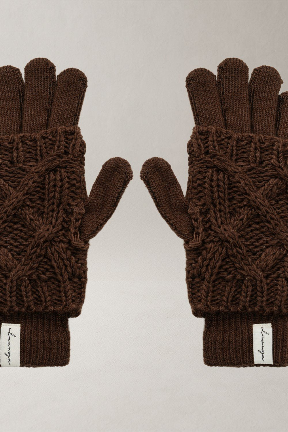 Kötött kesztyű, amely megóvja a kezet a hidegtől. Puha, rugalmas anyagból készült, így jól illeszkedik és kényelmes viselet. Az elején visszafogott logóval díszítve.