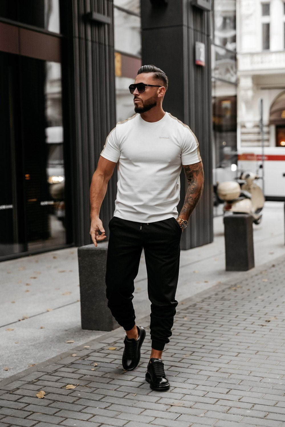 Klasszikus férfi rövid ujjú póló. Pamut alapanyagból, amelyek kellemes viseletet és jó szellőzést biztosítanak. Mellkason kontrasztos logónyomattal.