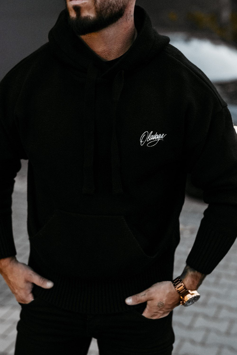 Puha, kapucnis kötött pulóver laza szabással. Kellemes tapintású anyagból, elöl finom logóval. Ideális hétköznapi, lezser szettekhez.