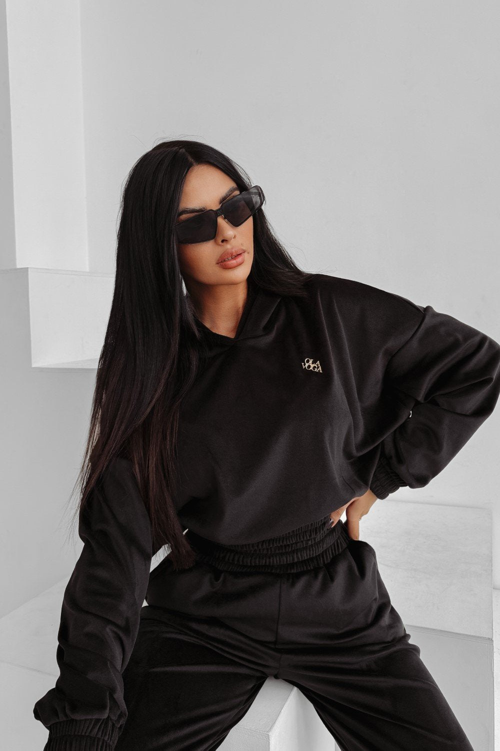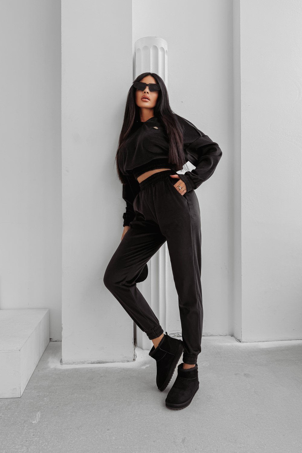 Női szett puha, viszkóz érzetű anyagból. Kényelmes, nőies szabással; felső és alsó darab harmonikusan illeszkedik, letisztult részletekkel.