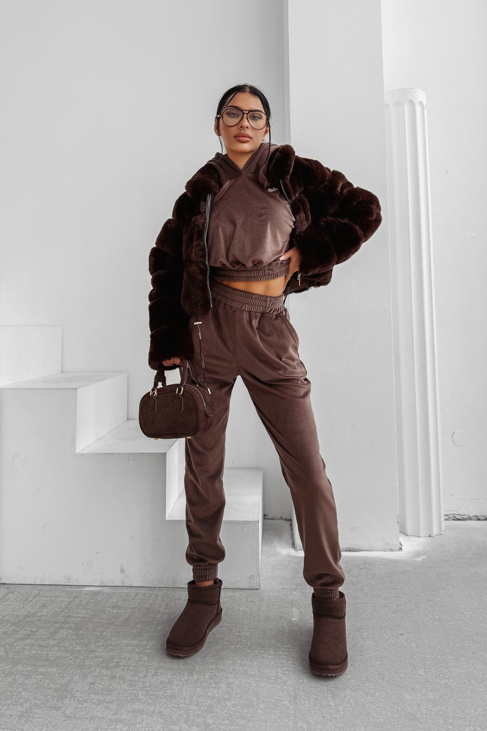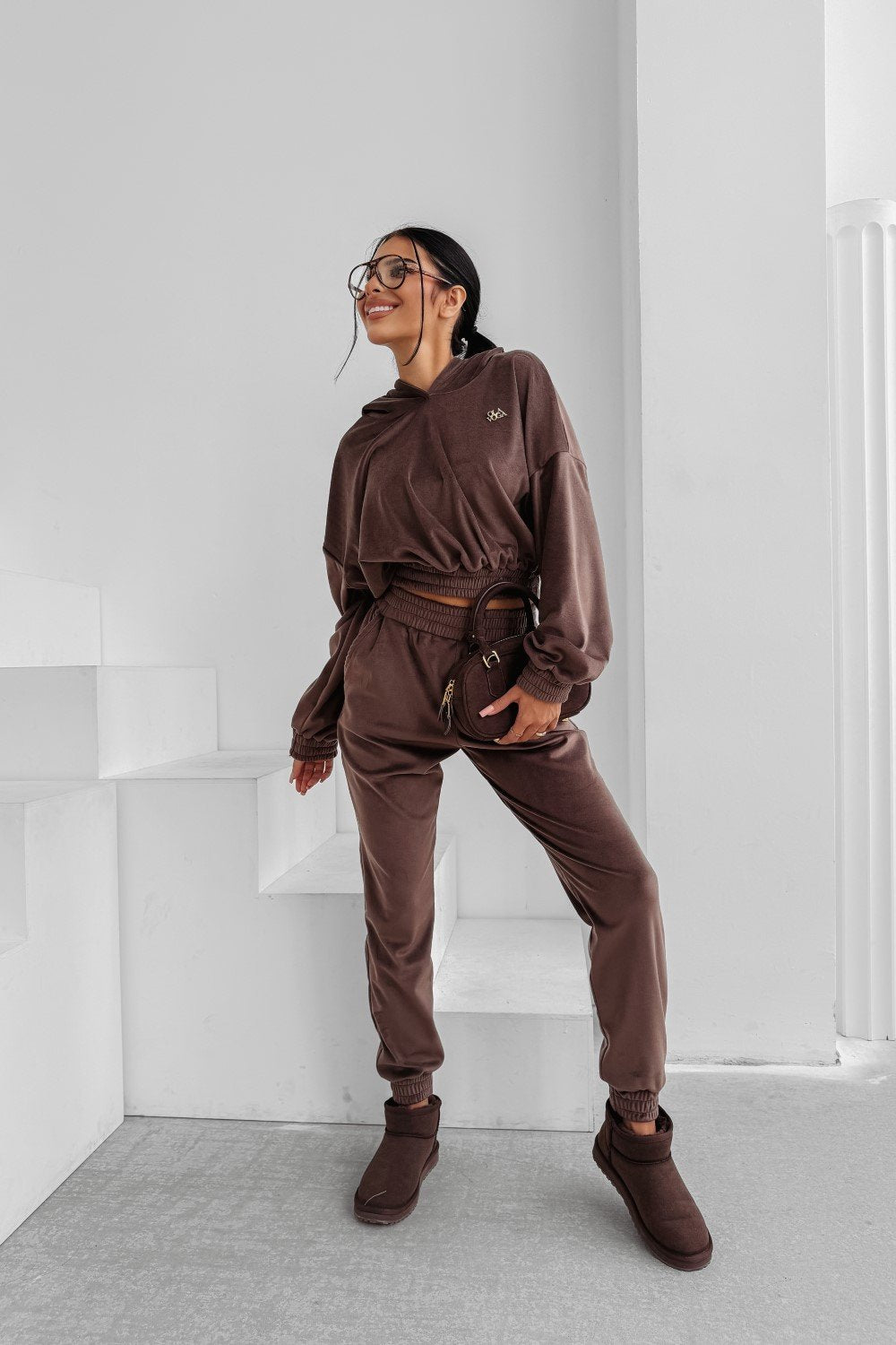Női szett puha, viszkóz érzetű anyagból. Kényelmes, nőies szabással; felső és alsó darab harmonikusan illeszkedik, letisztult részletekkel.
