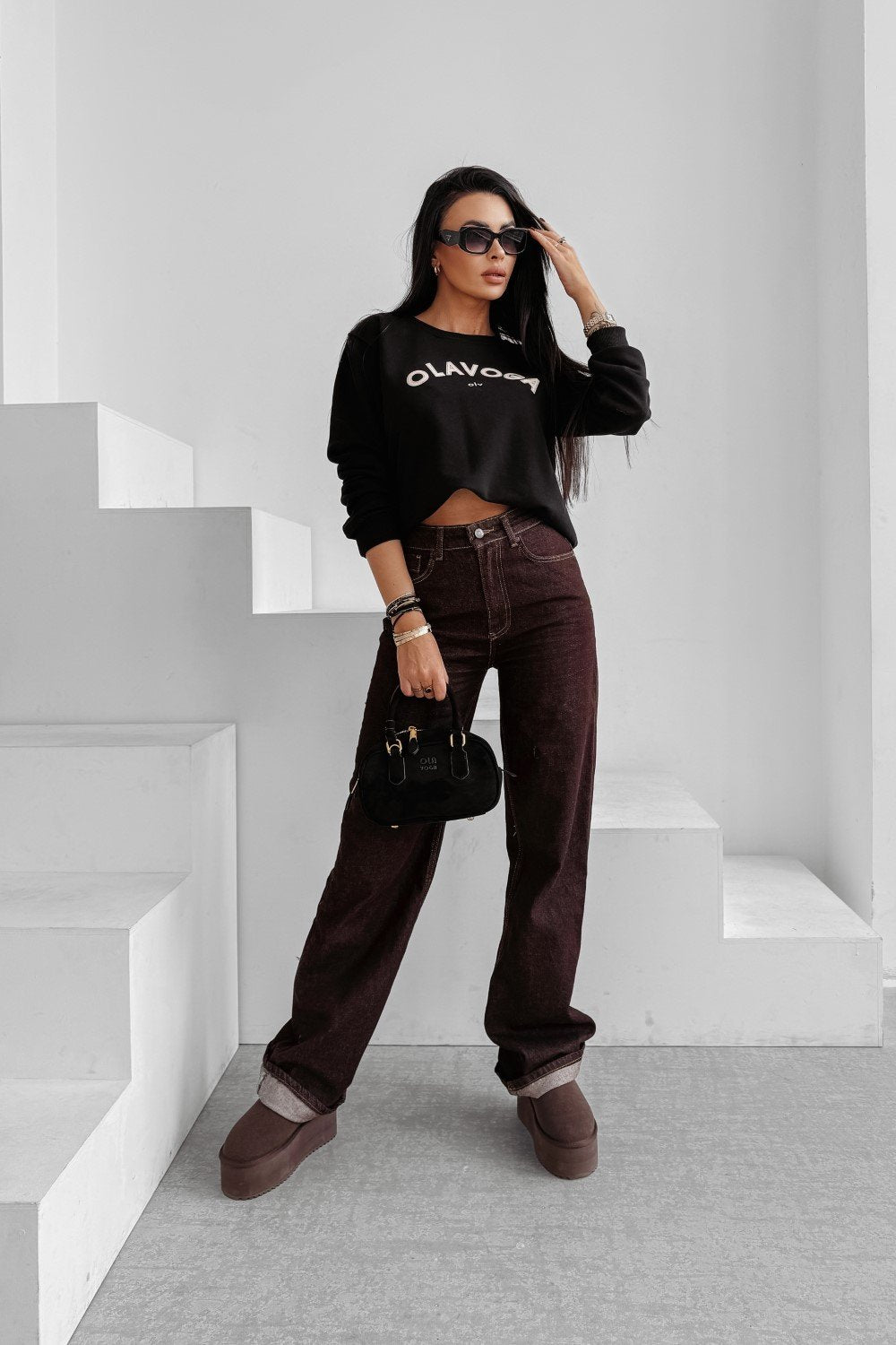 Magas minőségű, puha és kellemes tapintású pamutanyagból készült. Az elején nagy méretű, kontrasztos OLAVOGA logó látható, alatta finom "olv" felirattal. Az alsó szegély és az ujjak bordázott passzéval végződnek. Az egyik ujjon hímzett márkalogó található.