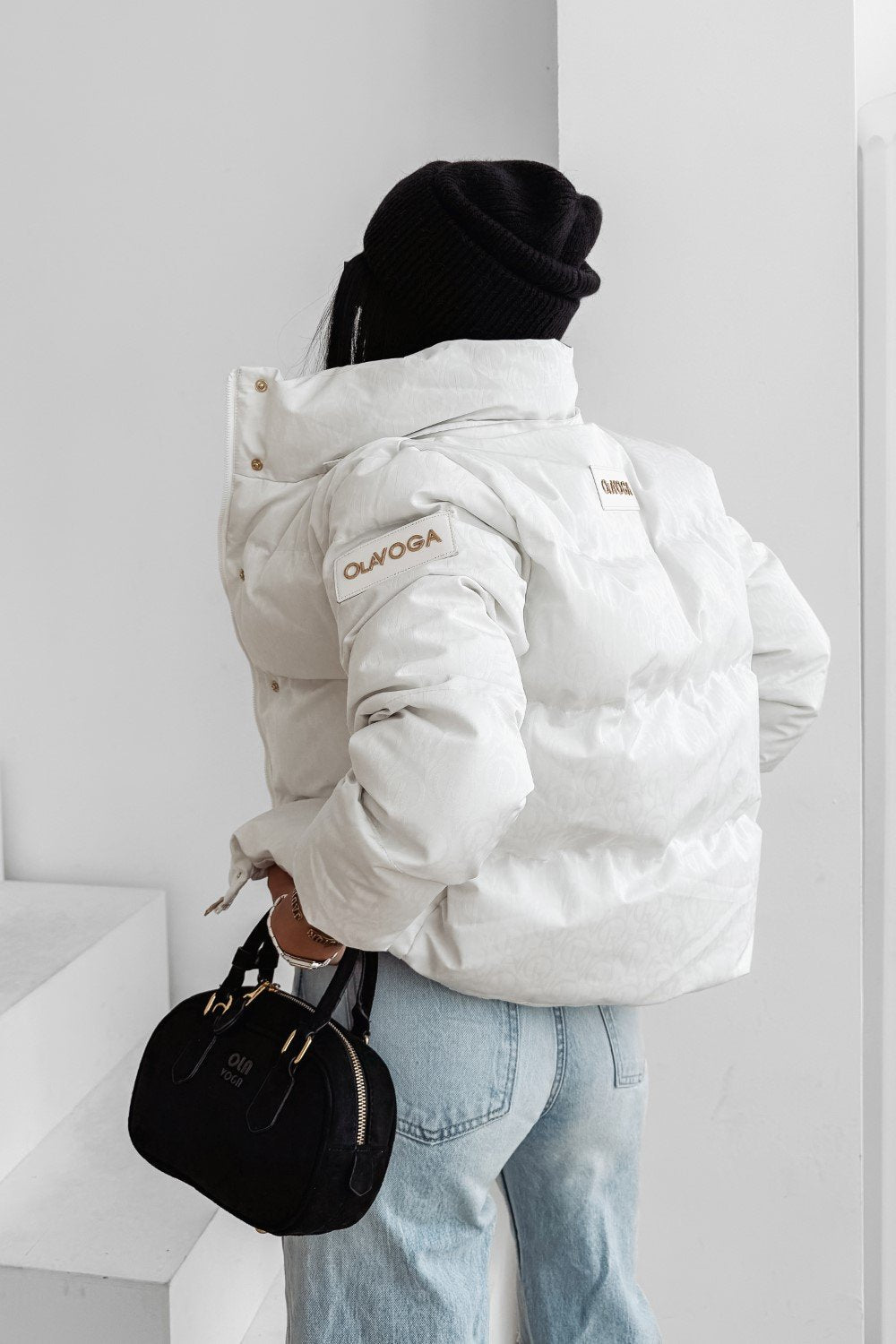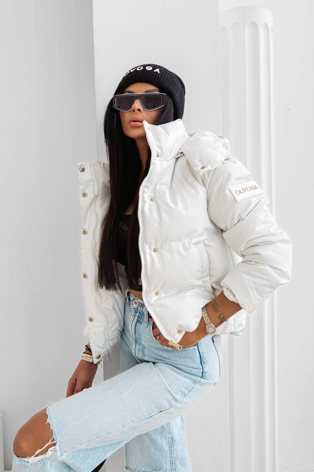 Klasszikus női rövid kabát díszszövött anyagból. Strukturált, elegáns szabás, finom részletekkel és visszafogott logóval – időtálló darab.