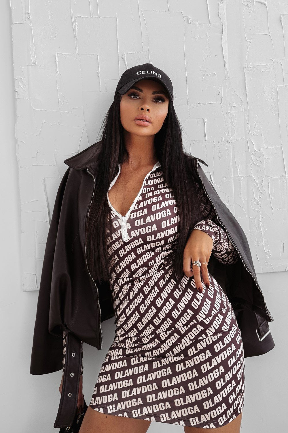 Testhezálló ruha magas minőségű, rugalmas kötött anyagból. Kiemeli a nőies vonalakat, kényelmes és elegáns. Elöl finom márkajelzés.