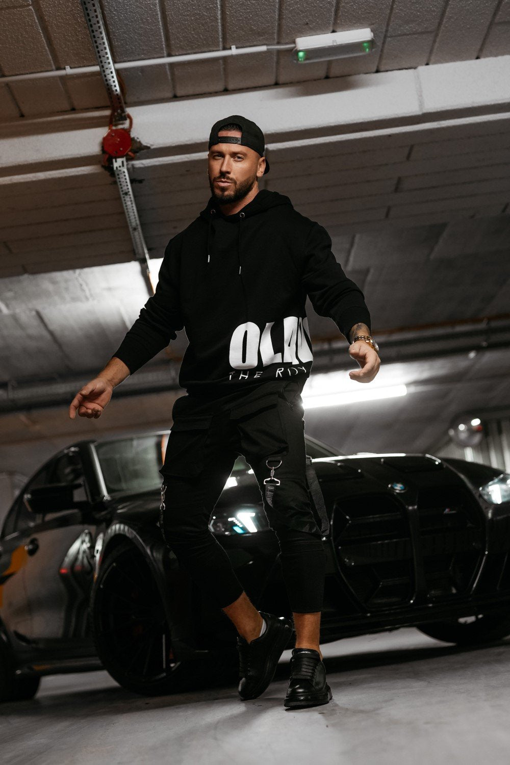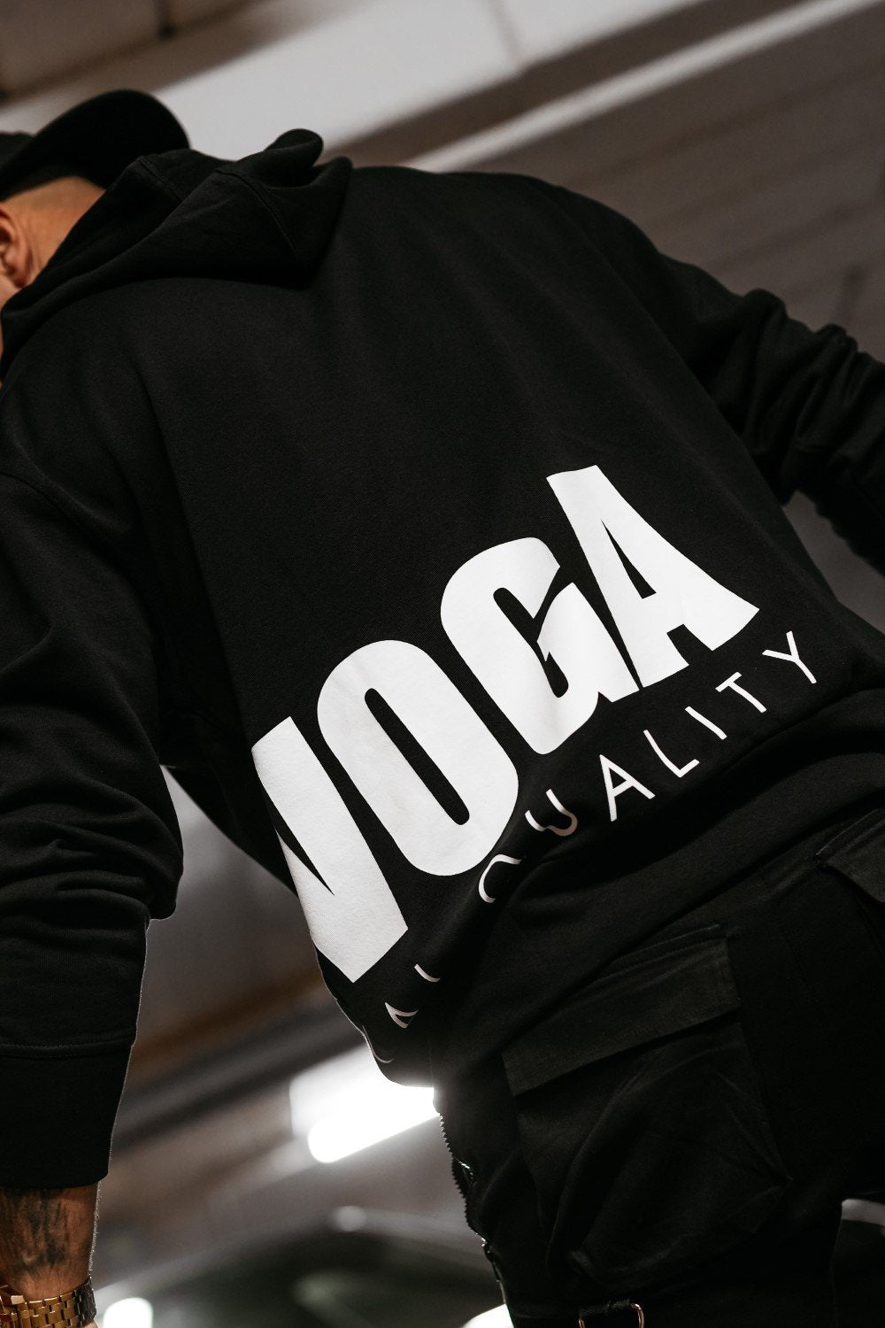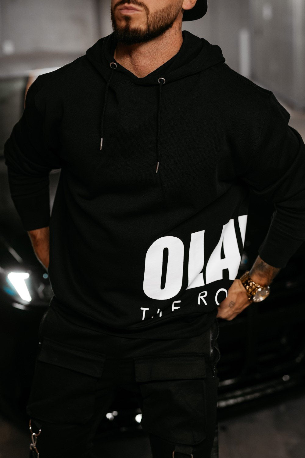 Laza, kényelmes szabású férfi kapucnis pulóver. 100% pamutból készült, ami garantálja a magas viselési komfortot. A darabot nagyméretű, állítható kapucni teszi praktikussá. A mellrészt és a hátat látványos „OLAVOGA” logónyomat és a „THE ROYAL QUALITY” felirat díszíti.