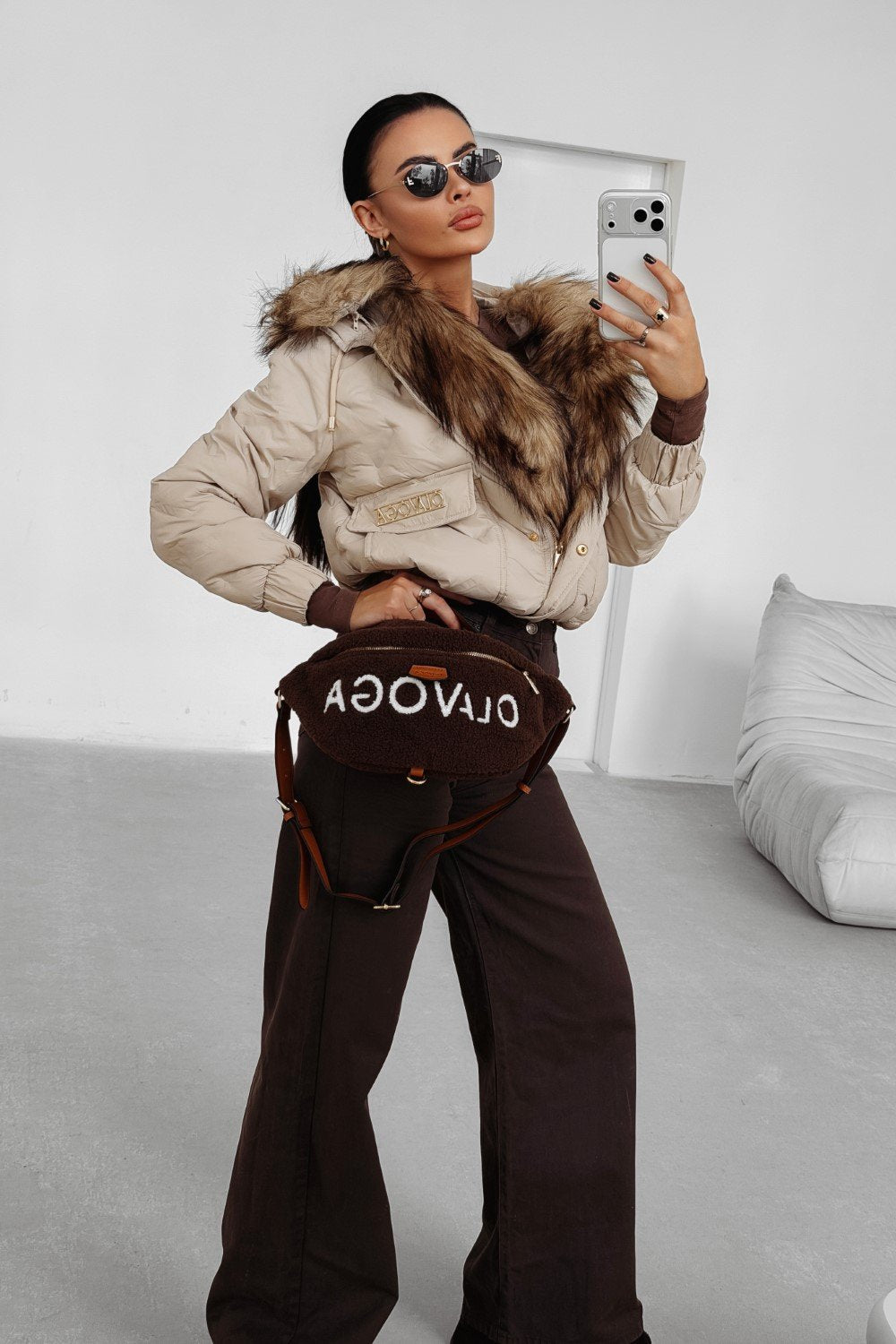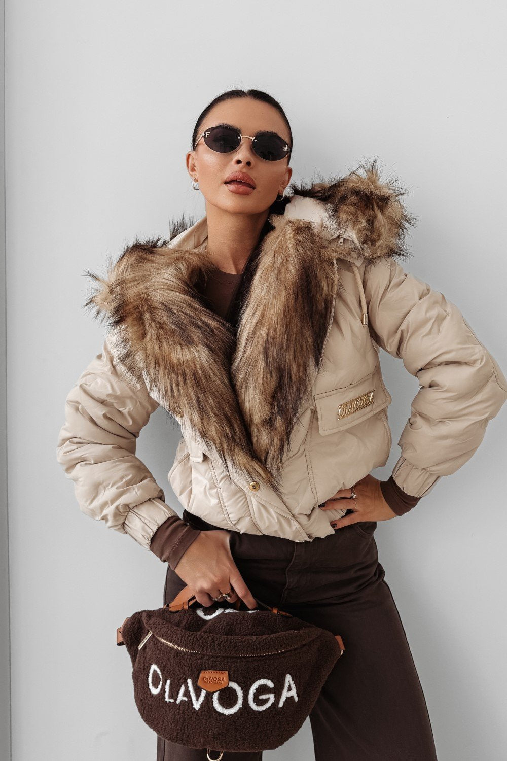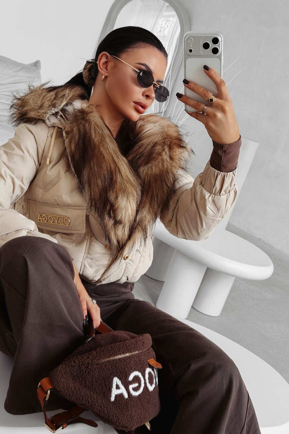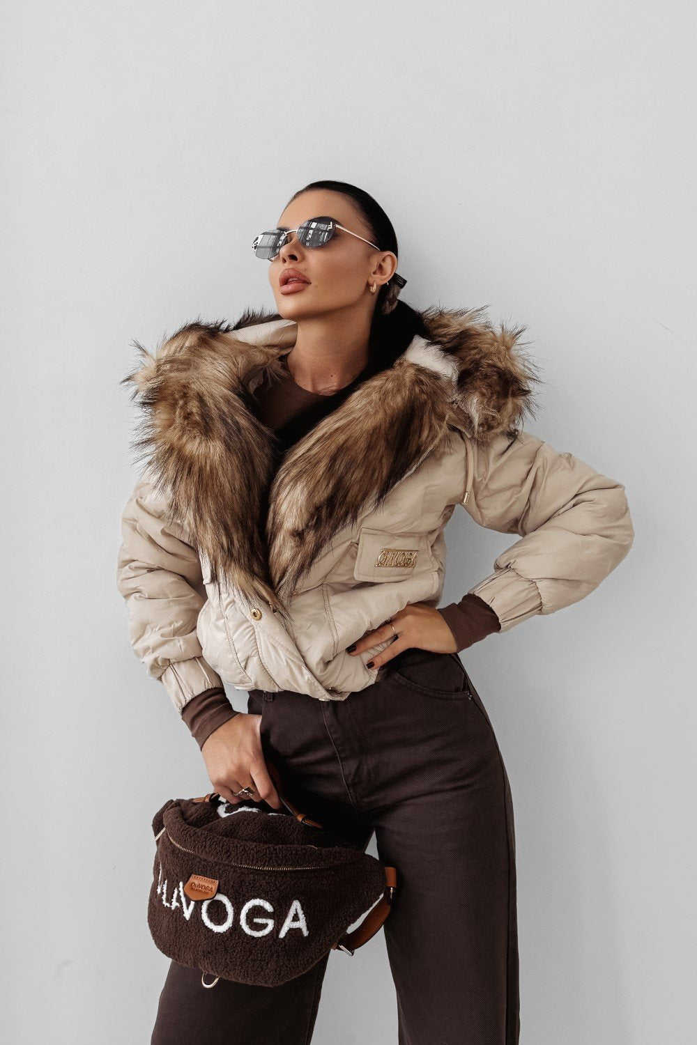 Rövidebb, pufi női kabát klasszikus stílusban. Meleg, kényelmes, letisztult részletekkel és visszafogott logóval.