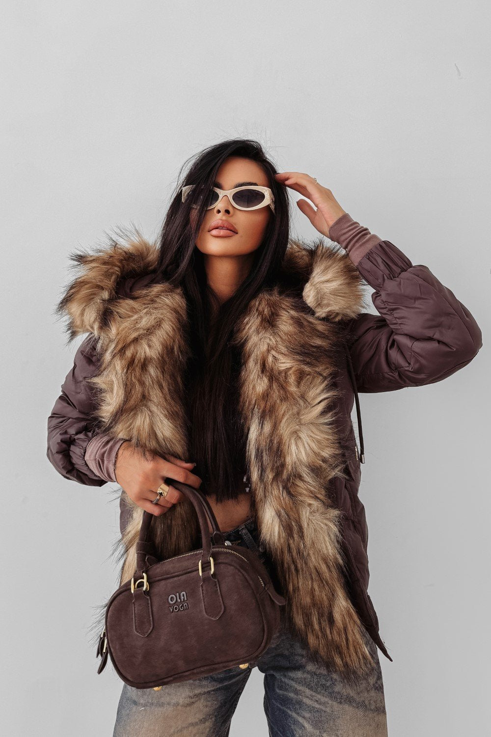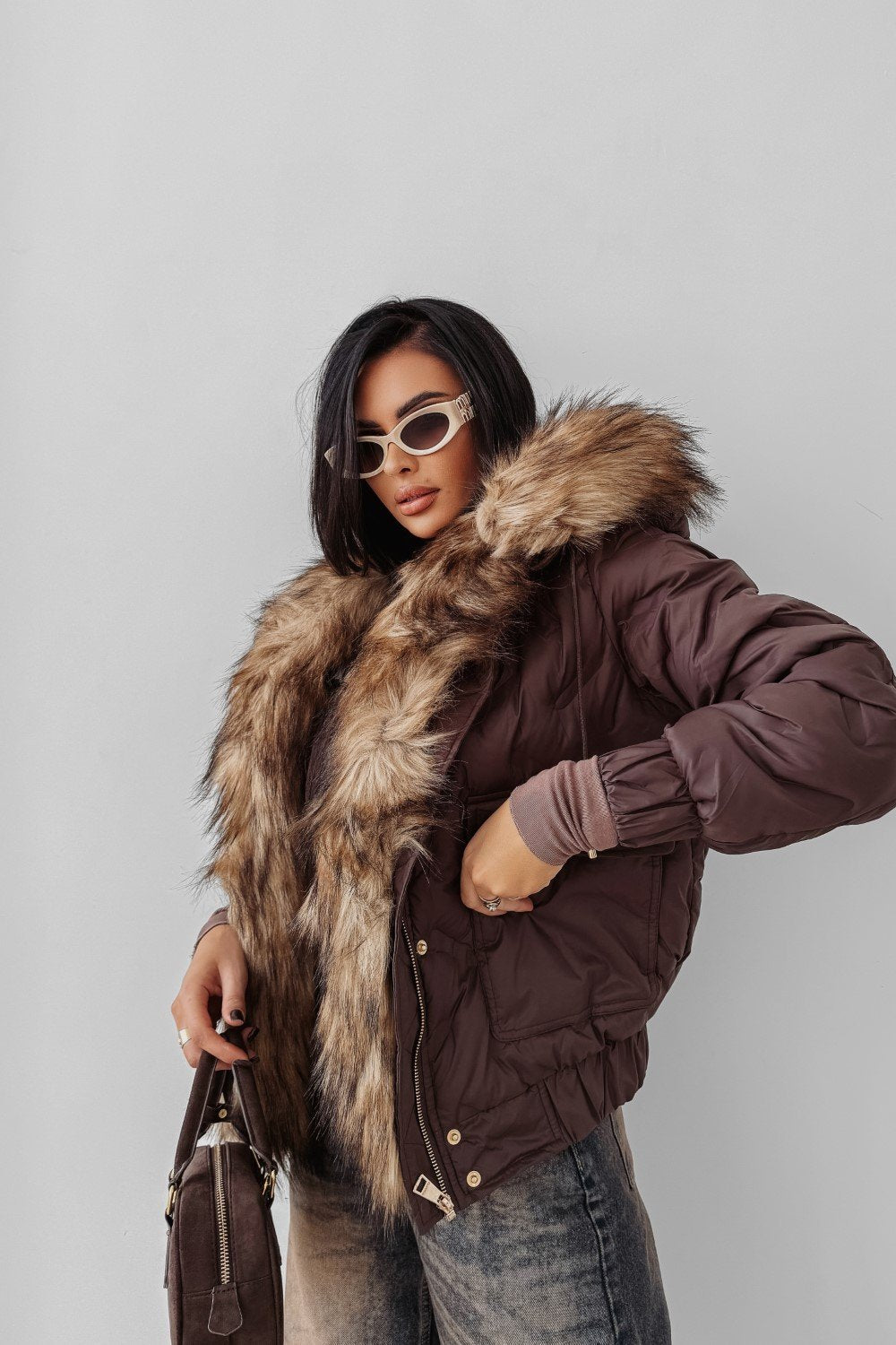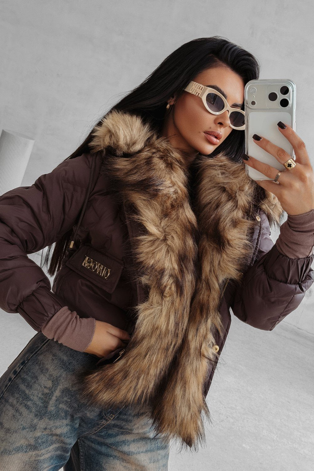 Rövidebb, pufi női kabát klasszikus stílusban. Meleg, kényelmes, letisztult részletekkel és visszafogott logóval.