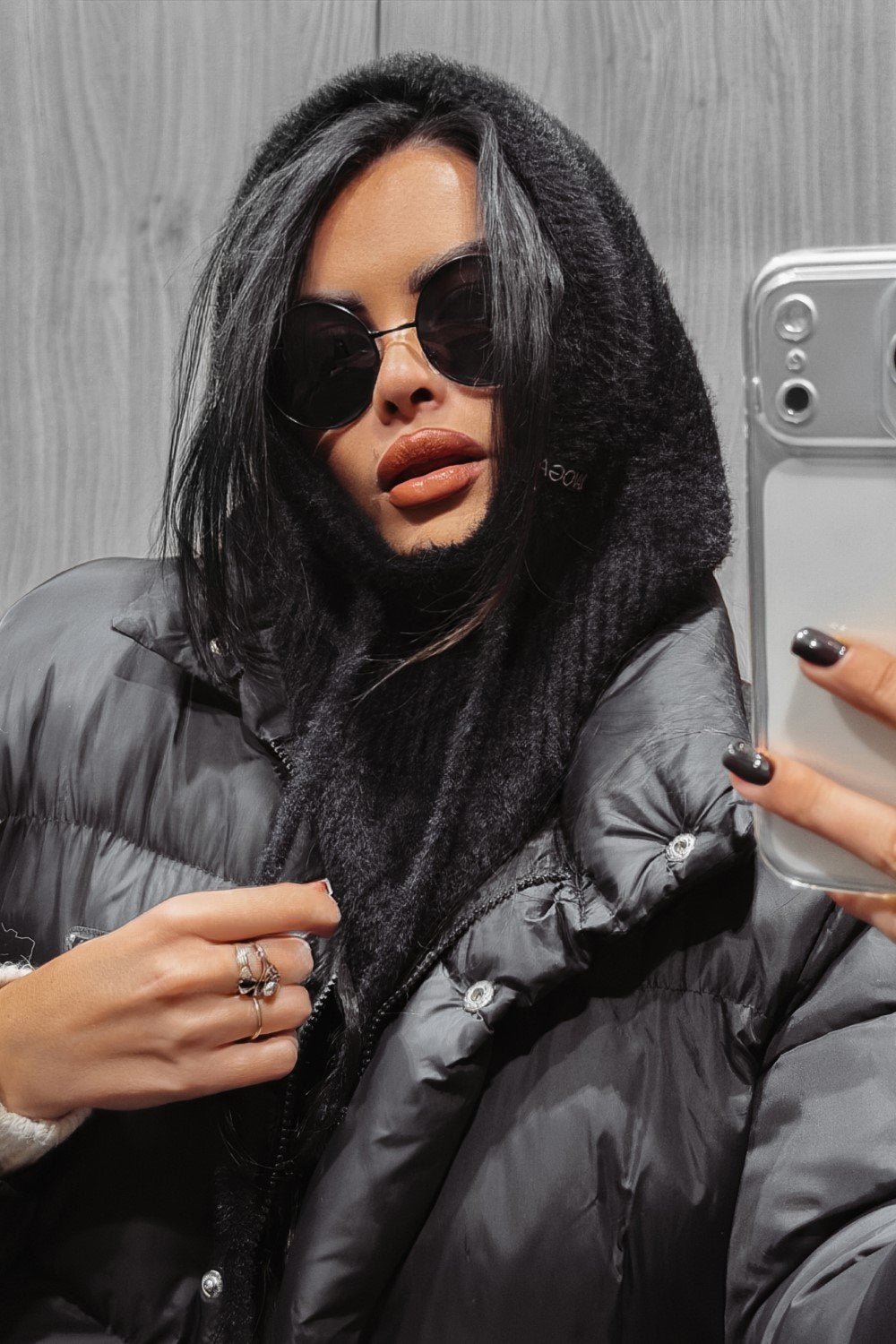 Női símaszk puha, kellemes kötött anyagból. Rugalmas és meleg, letisztult részletekkel.