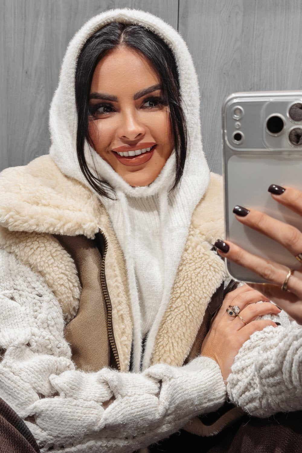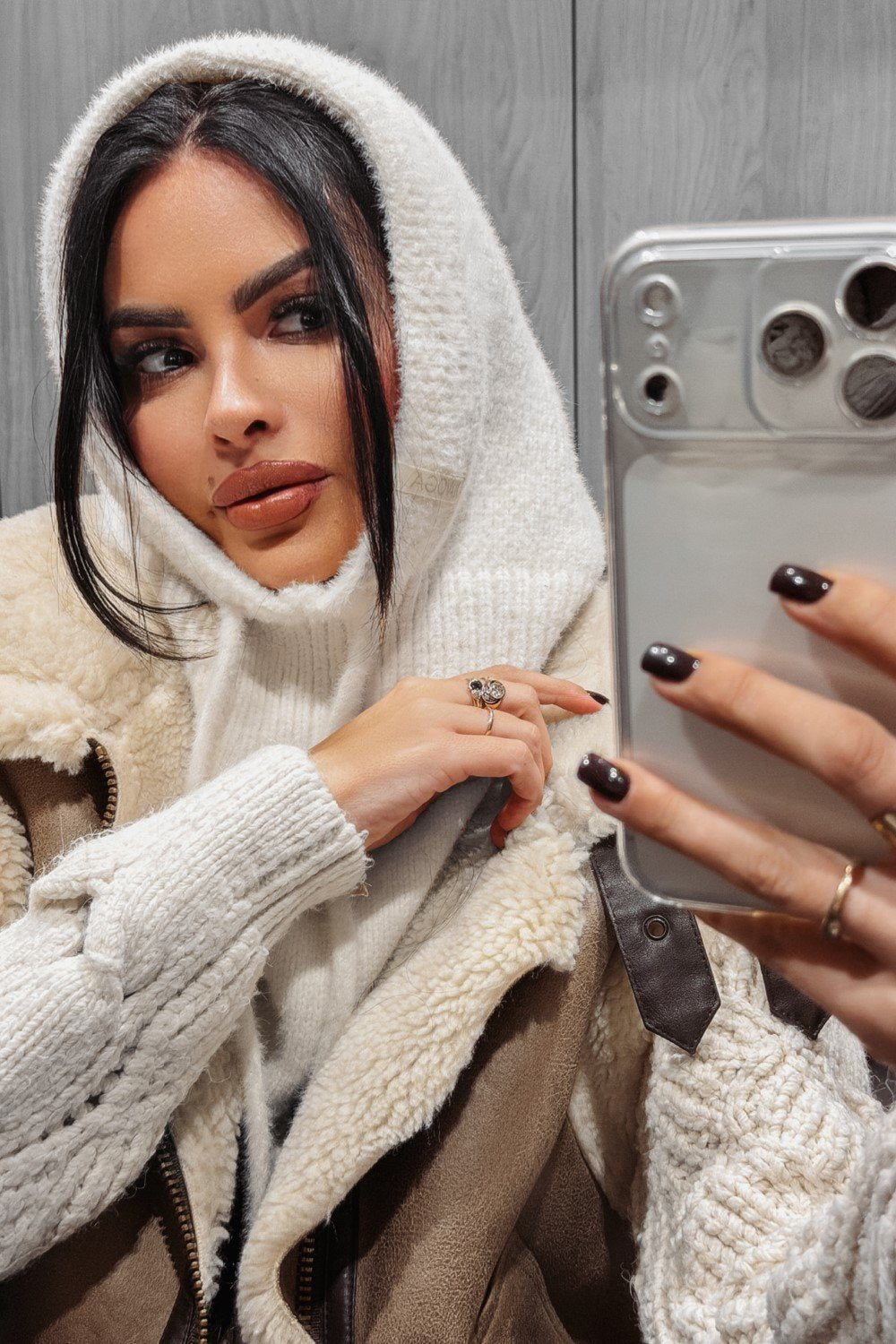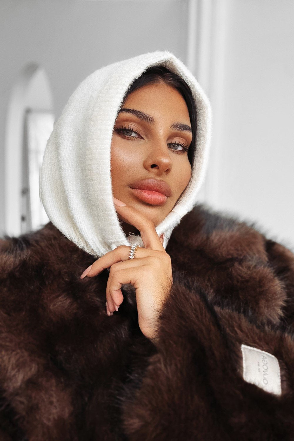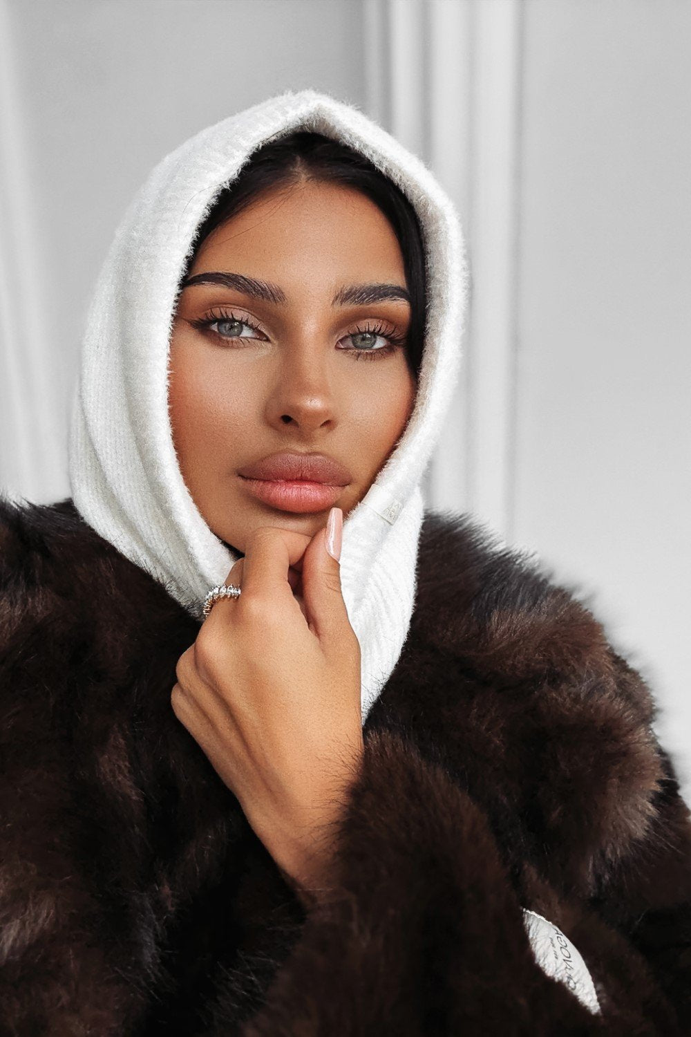 Női símaszk puha, kellemes kötött anyagból. Rugalmas és meleg, letisztult részletekkel.