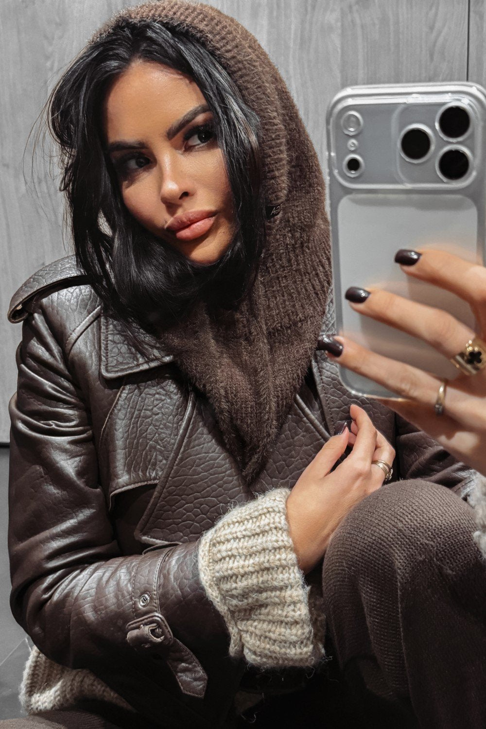 Női símaszk puha, kellemes kötött anyagból. Rugalmas és meleg, letisztult részletekkel.