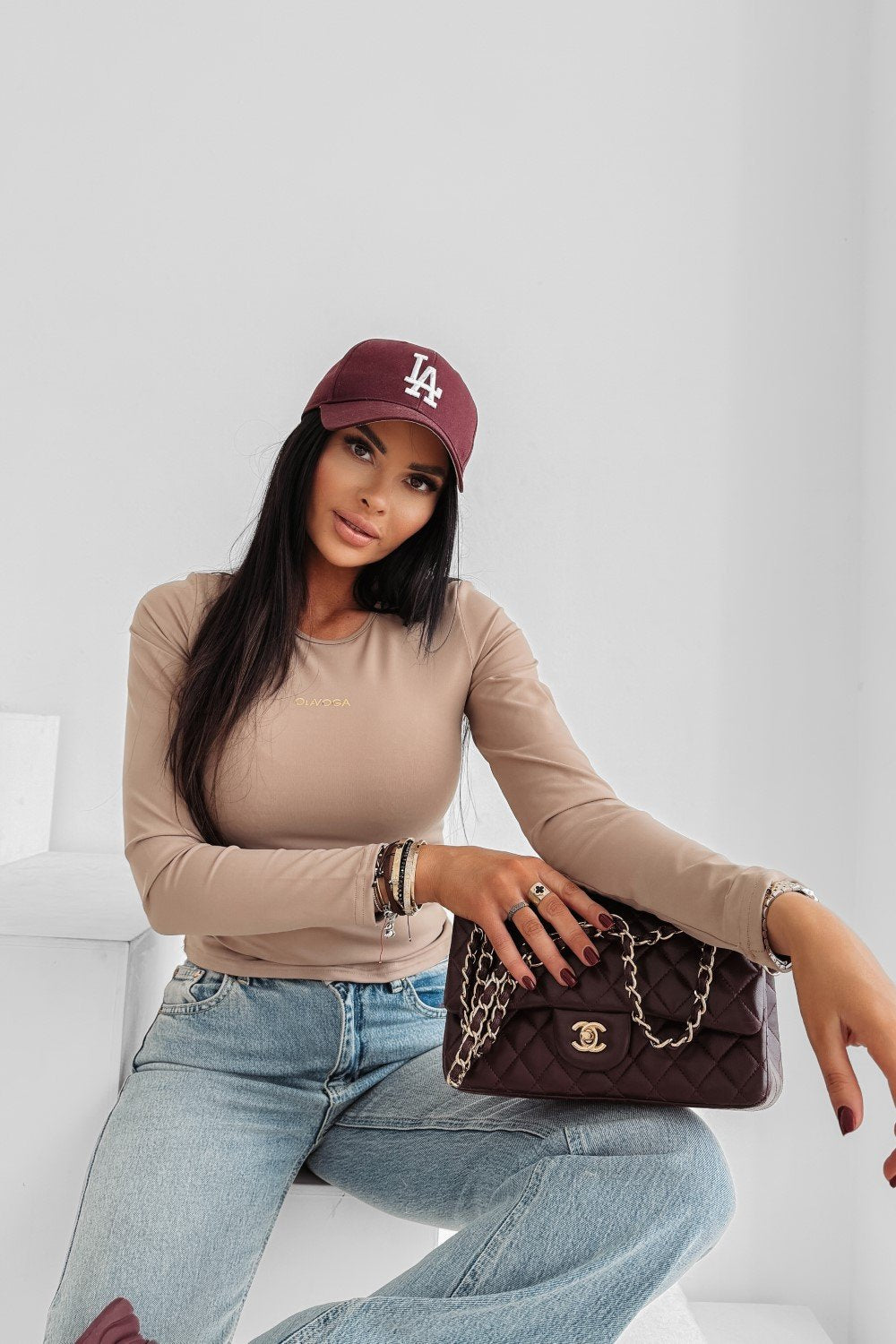 Minimalista, testhezálló hosszú ujjú felső félgarbós nyakkal. Rugalmas anyagból készült, amely kényelmes és alakot követő. Mellkason finom logóval.