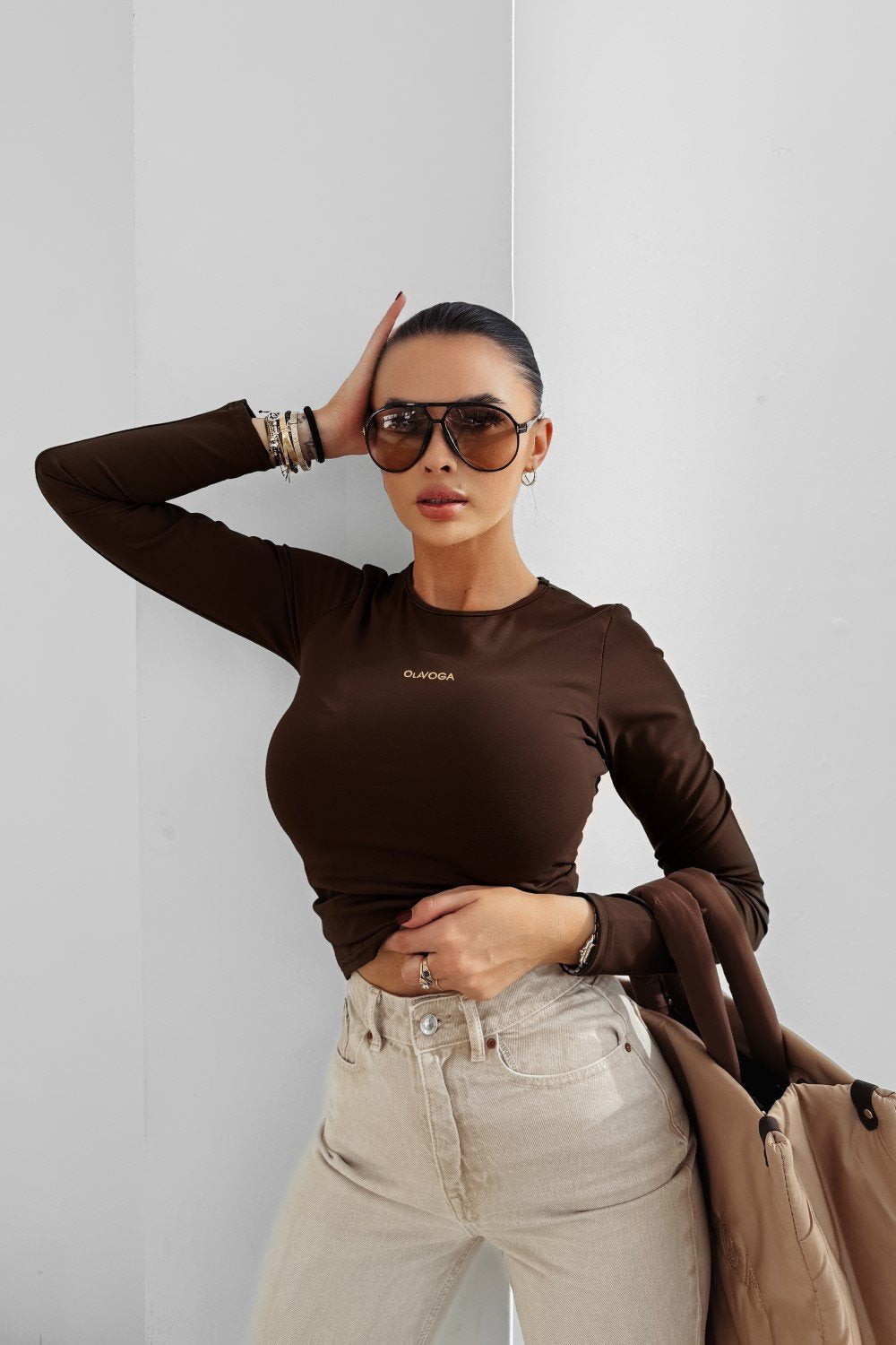 Minimalista, testhezálló hosszú ujjú felső félgarbós nyakkal. Rugalmas anyagból készült, amely kényelmes és alakot követő. Mellkason finom logóval.