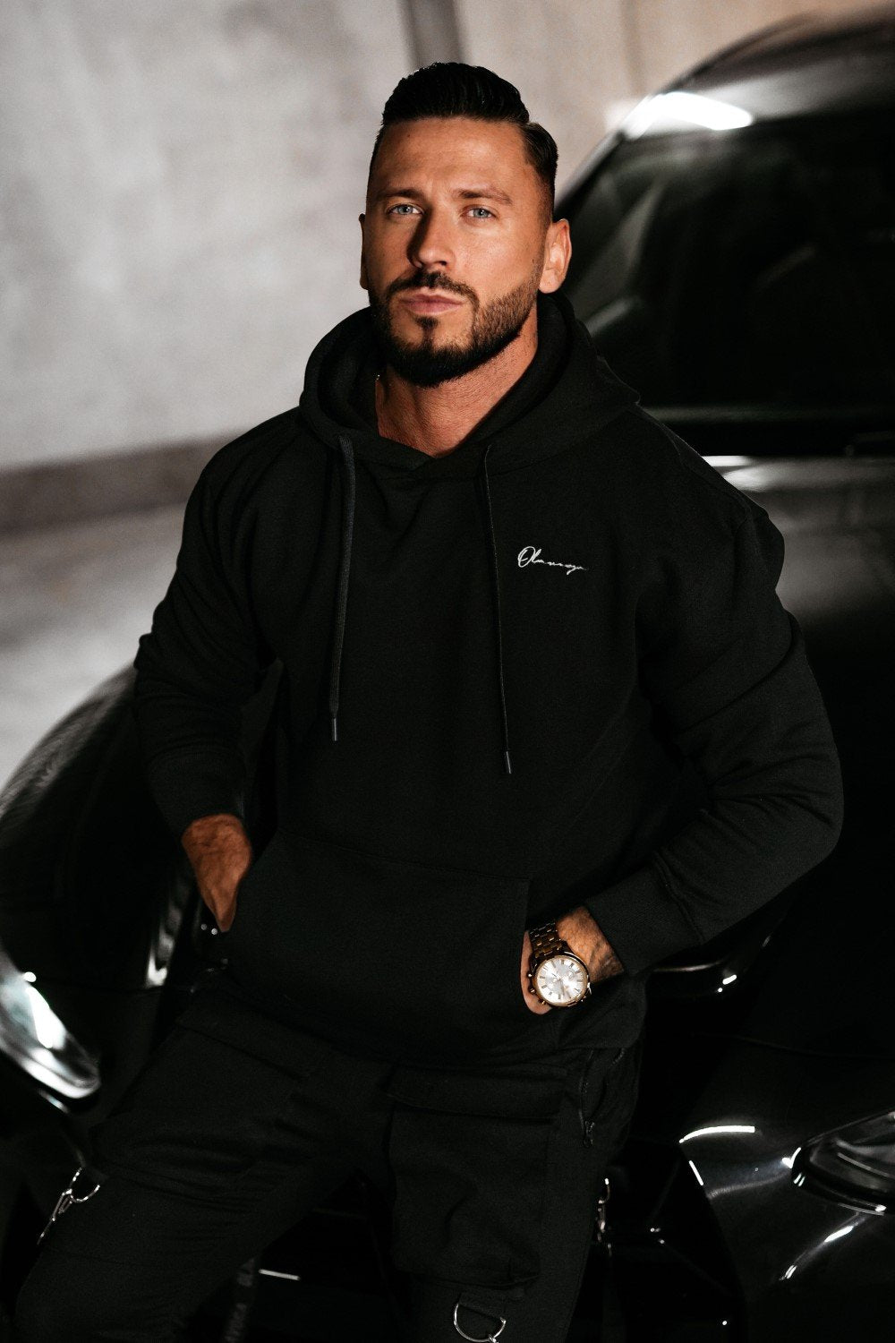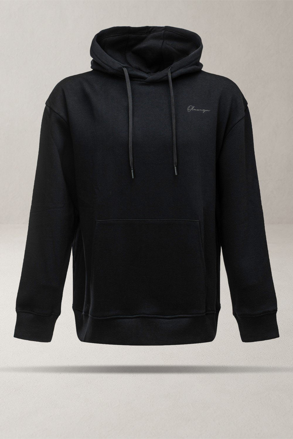 Laza stílusú, kapucnis pulóver, amely kiváló minőségű, puha és prémium pamutból készült. A mellrészen finom, írott hatású OLAVOGA hímzés díszíti. Praktikus kenguruzsebbel és állítható kapucnival rendelkezik, amelyet vastag húzózsinór egészít ki.