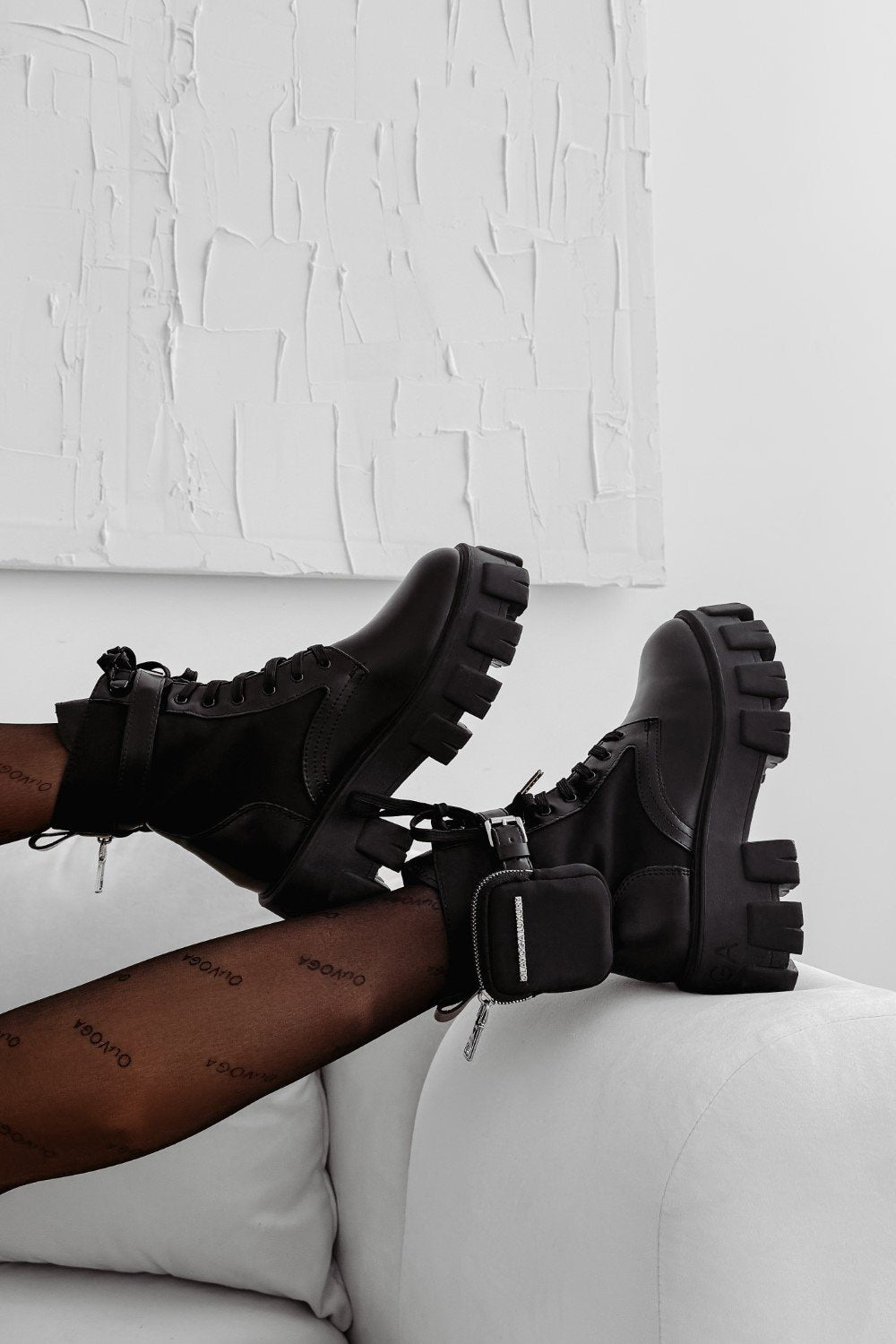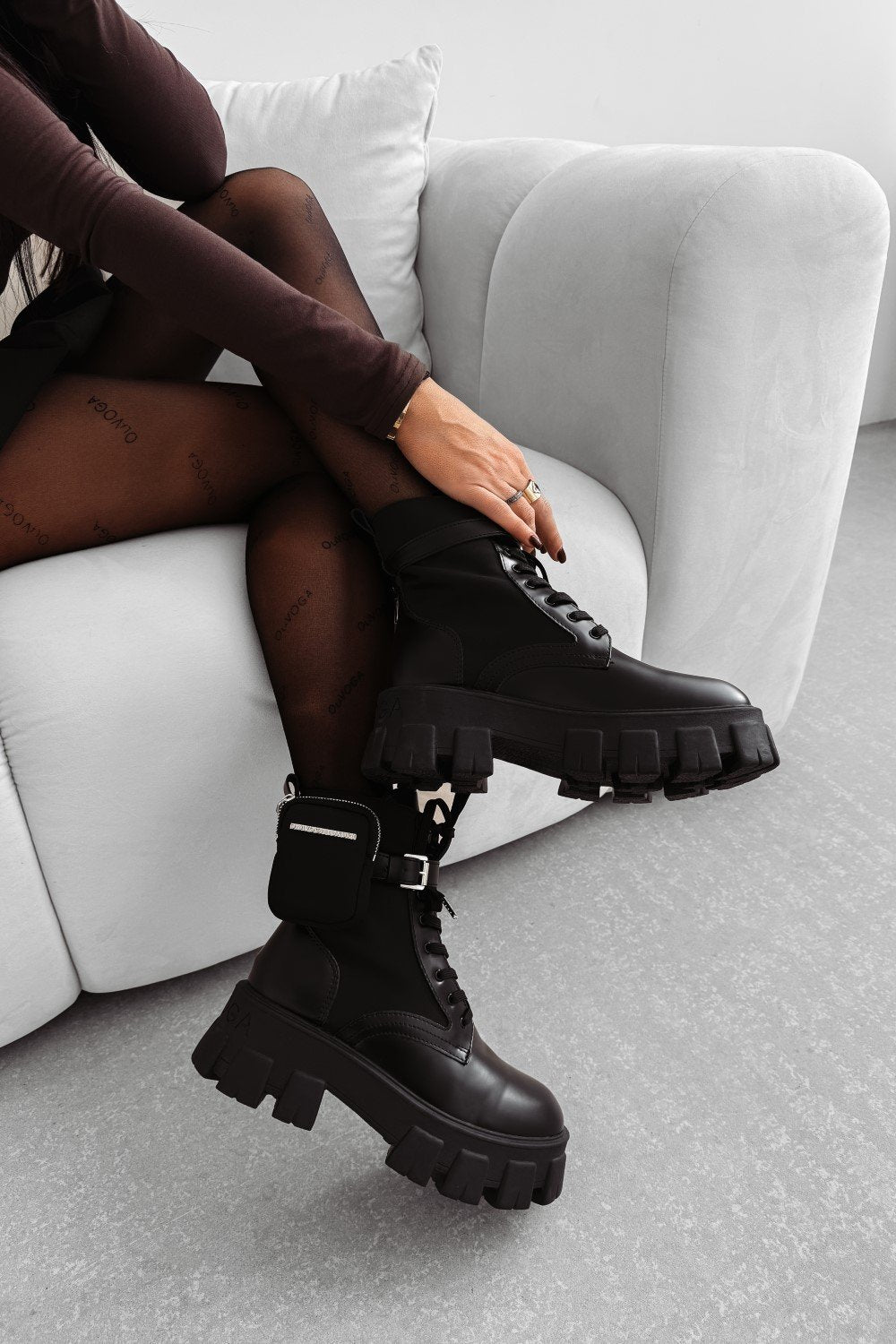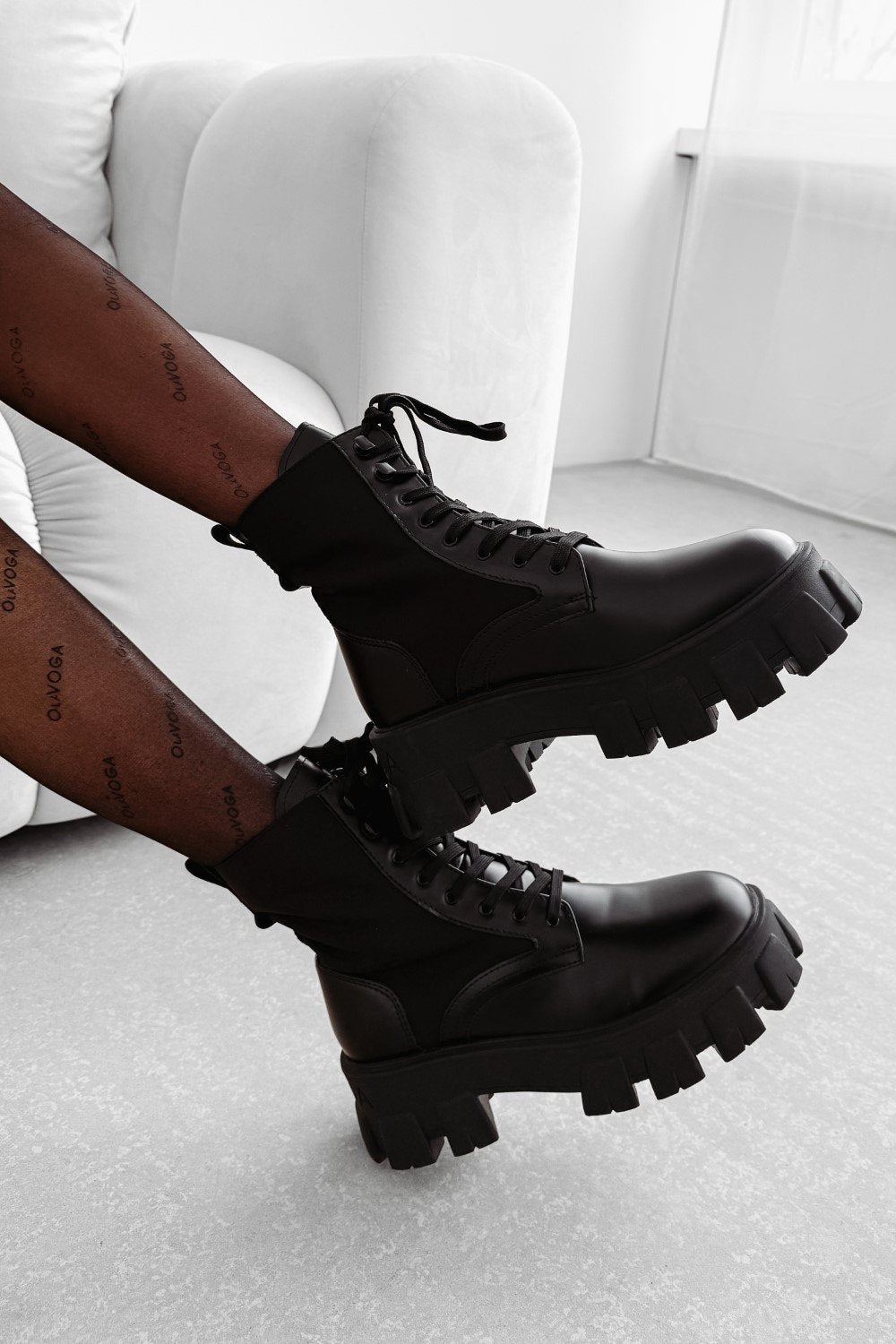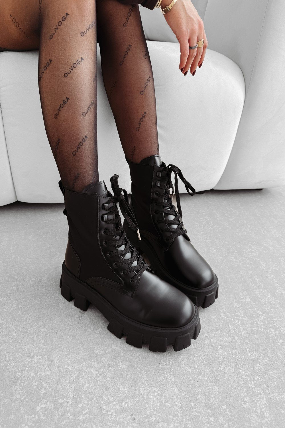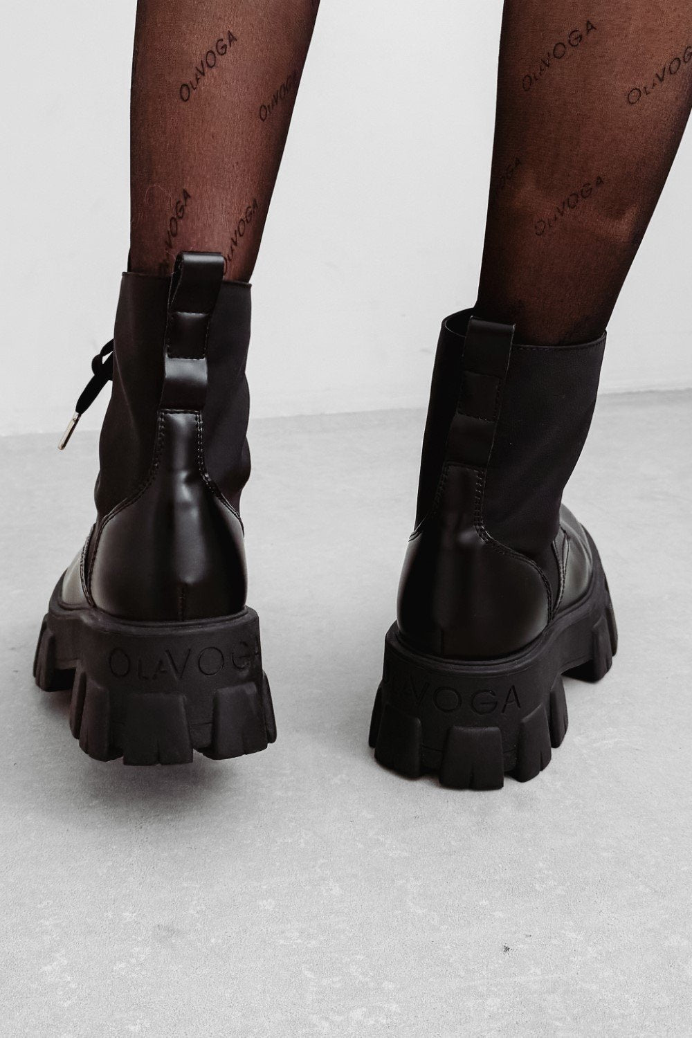 Divatos, masszív kialakítású női bakancs, modern megjelenéssel. Kiváló minőségű, környezetbarát (vegán) bőrből készült, vastag, bordázott talppal, amelyet hátul a OLAVOGA márkajelzés díszít.