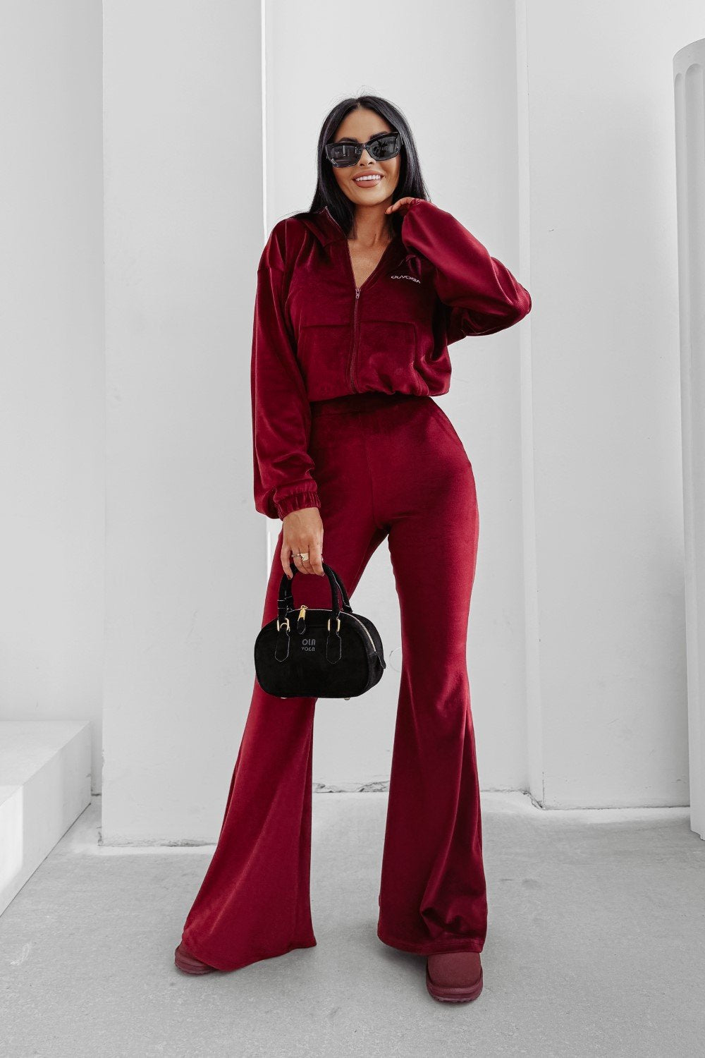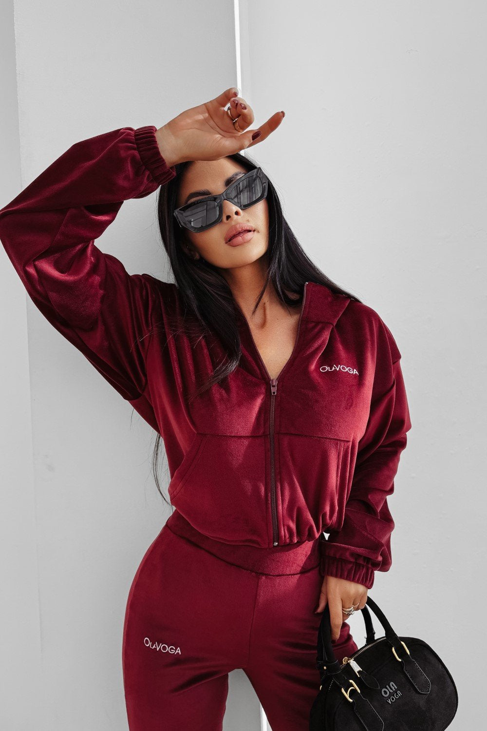 Laza stílusú, női szett, amely kiváló minőségű, puha, enyhén fényes velúr anyagból készült.