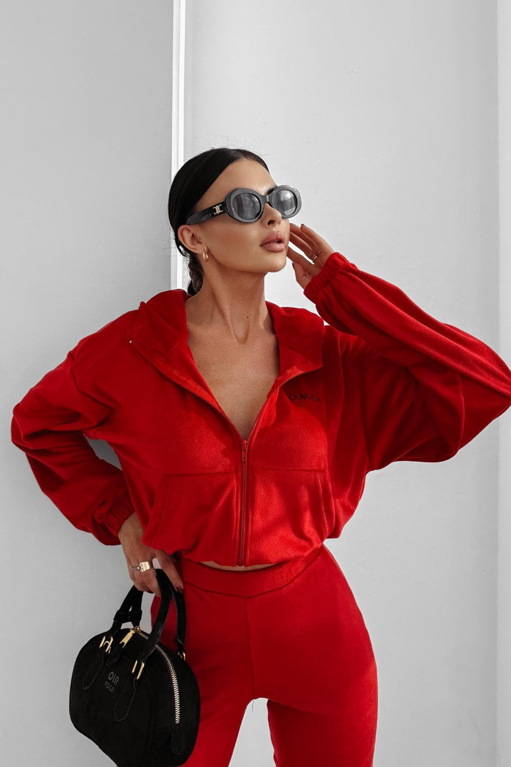 Laza stílusú, női szett, amely kiváló minőségű, puha, enyhén fényes velúr anyagból készült.