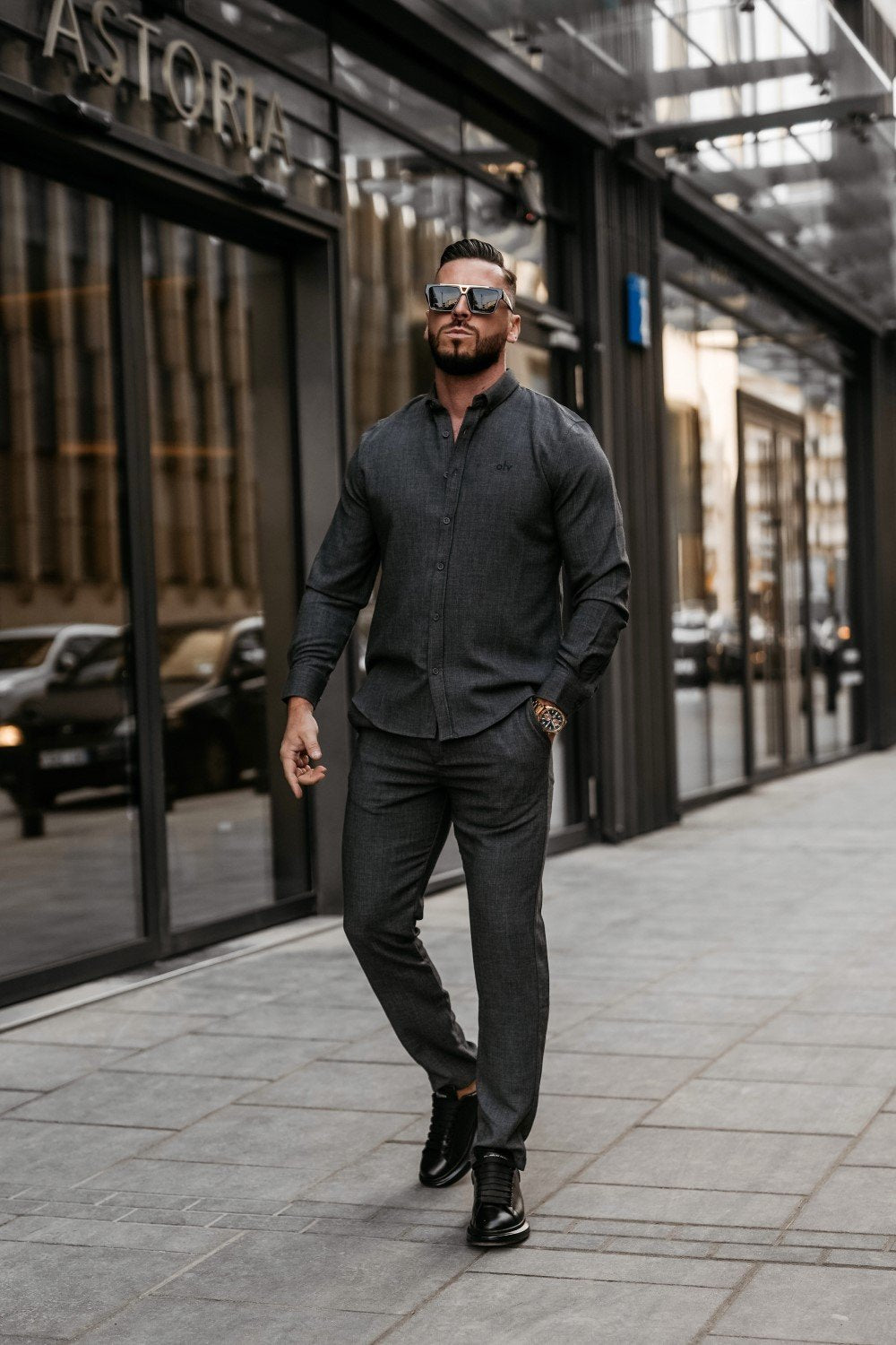 Férfi casual szett minőségi kötött anyagból. Kapucnis felső és kényelmes nadrág praktikus zsebekkel, mellkason logóval.