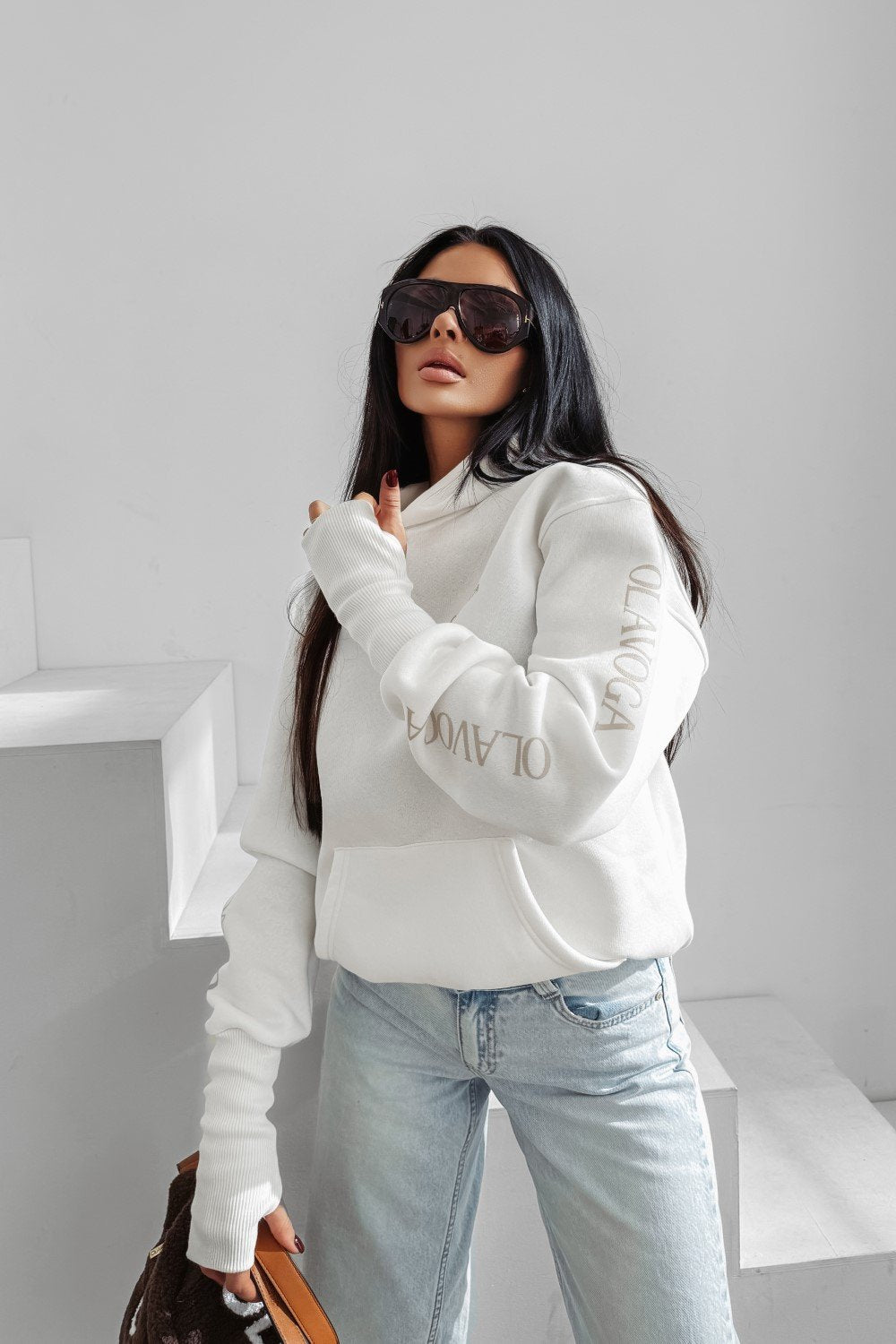 Oversize kapucnis pulóver hosszabb fazonnal. Puha anyagból, rugalmas szegélyekkel és elöl logónyomattal – kényelmes mindennapi viselet.