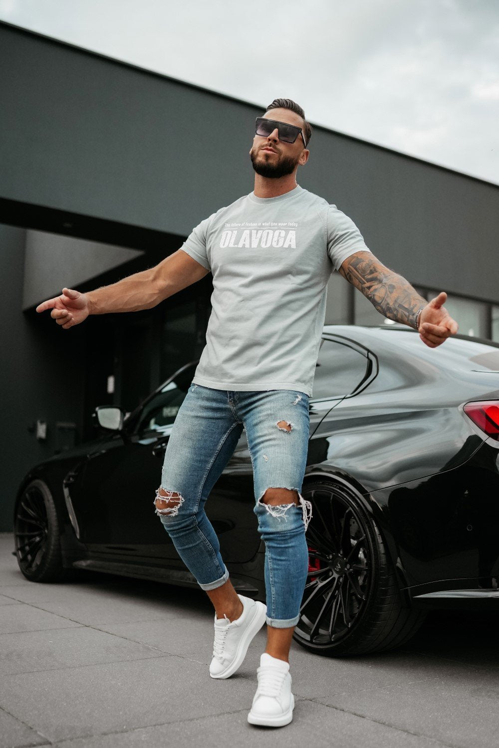 Férfi rövid ujjú póló klasszikus szabással. Pamut anyagból, mellkason OLAVOGA logónyomattal.